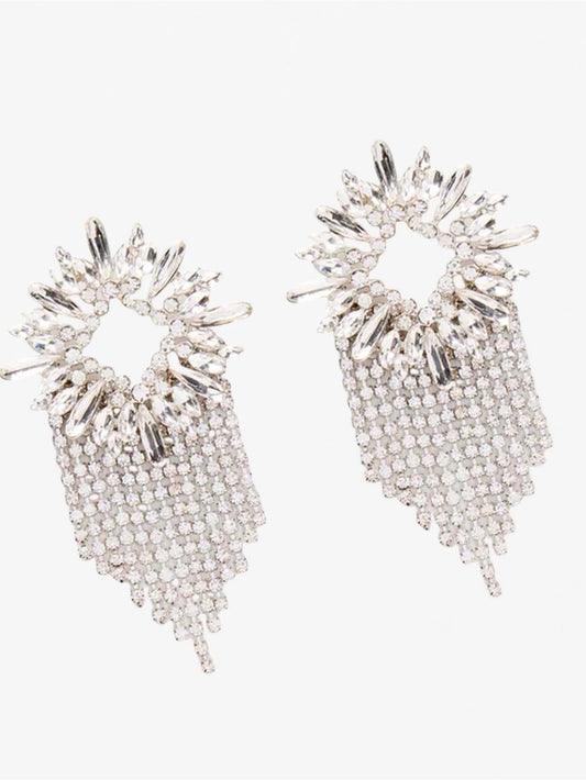 Parti Buluşması Gecesi Elbisesi İçin Parıltılı Kristal Taşlı Halka Küpeler