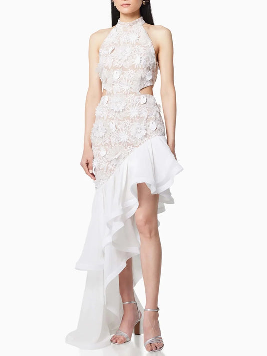 27% İndirimÇiçek Dantel Üstü Asimetrik Etek Ucu Elbise