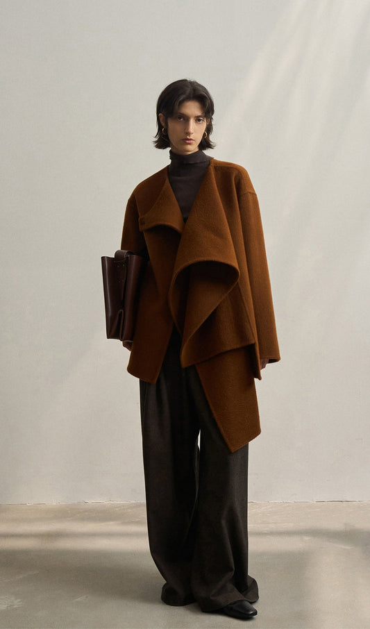 32% İndirimDüz Pelerin Tarzı Palto-Kestane