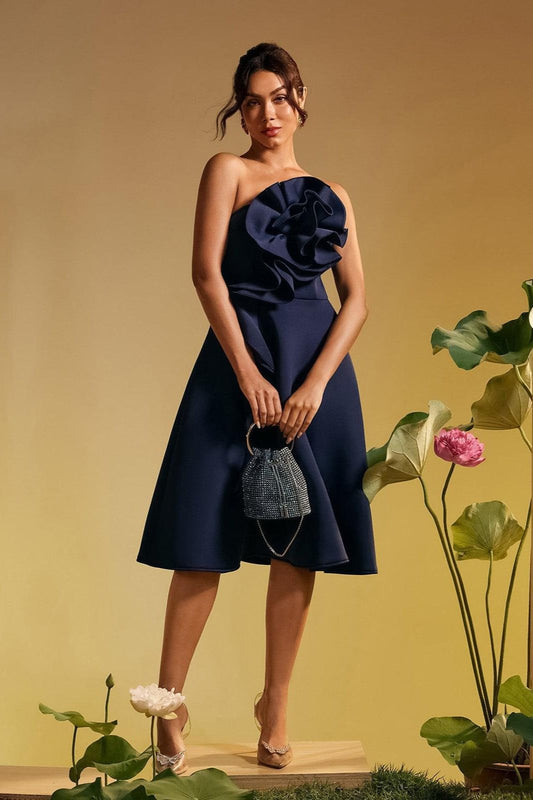 29% İndirimPolly Straplez Çiçek Kıvrımlı Midi Elbise