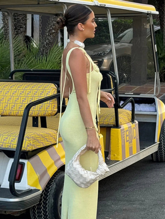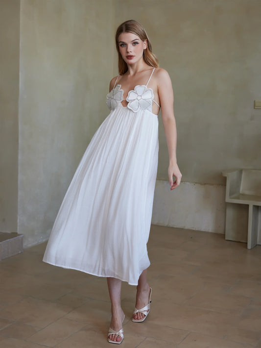 26% İndirimŞık Askılı Çiçek Aplikeli Uzun Elbise