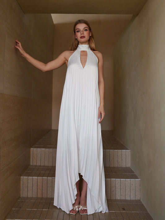 27% İndirimŞık Pileli Boyundan Bağlamalı Elbise