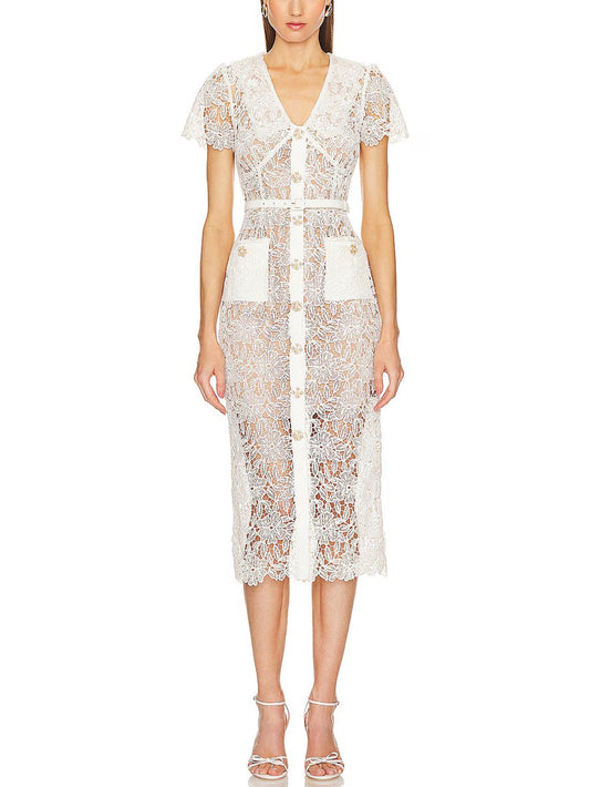 20% İndirimŞık Tığ İşi Dantel Midi Elbise