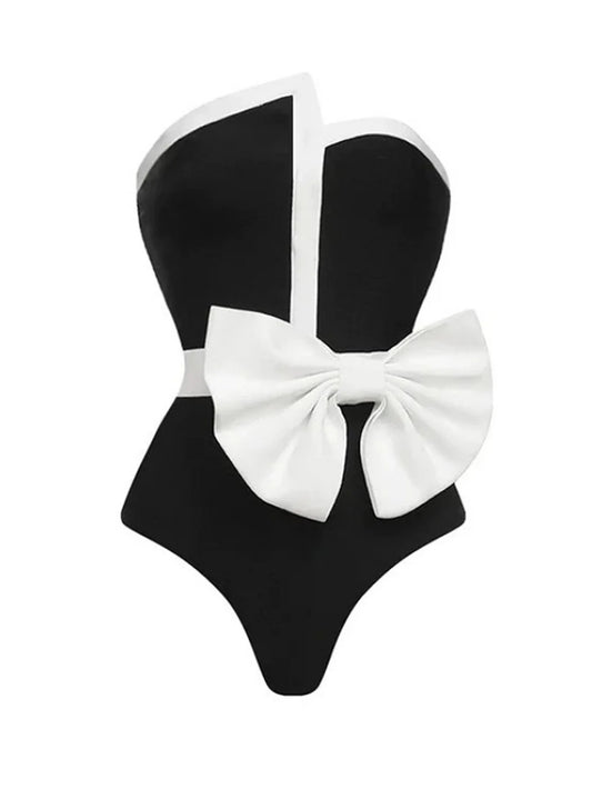 28% İndirimŞık Kontrast Fiyonklu Mayo İki Parça Takım