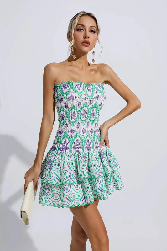 32% İndirimBettye Askısız Taşlı Saçaklı Mini Elbise