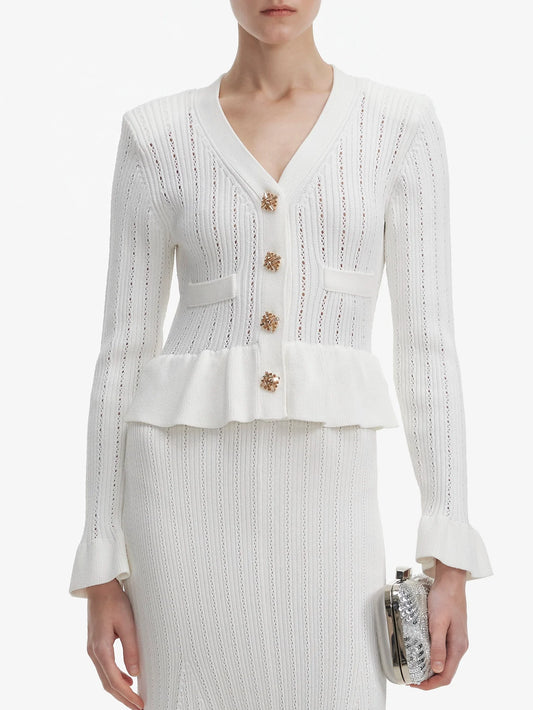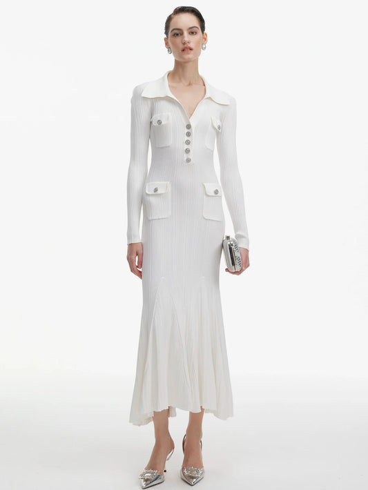 29% İndirimSloan Beyaz Hollow Uzun Kollu Midi Elbise