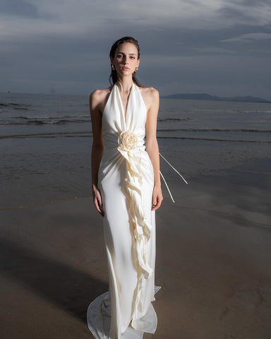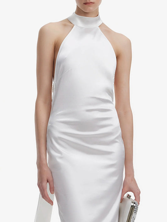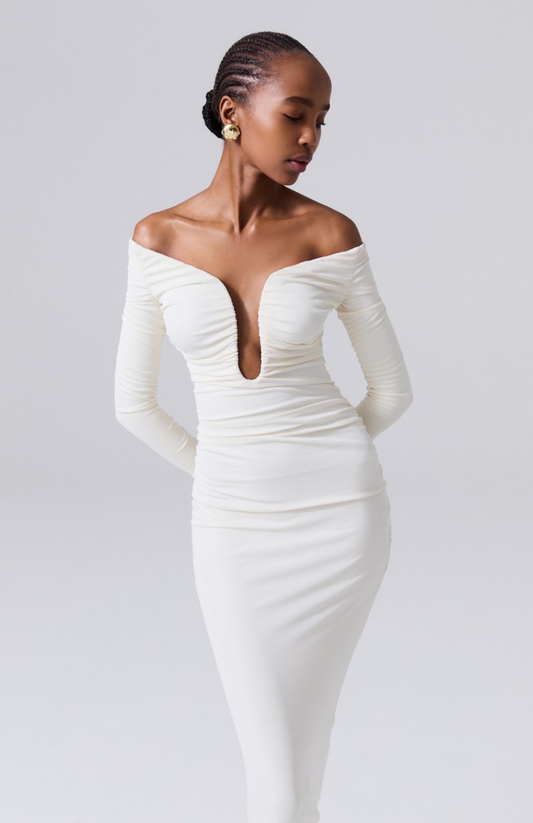 26% İndirimMilena Beyaz Kesikli Kıvrımlı Uzun Elbise