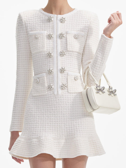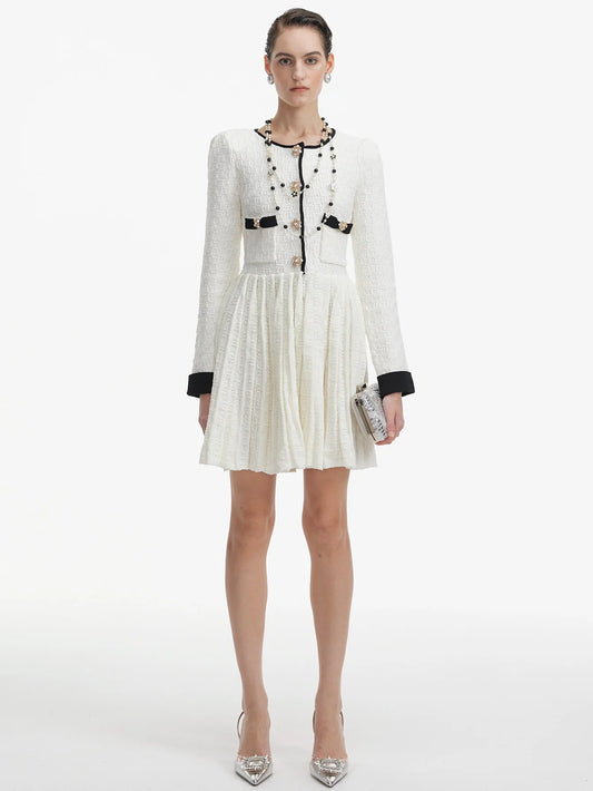 21% İndirimİnci Düğmeli Pileli Örgü Mini Elbise