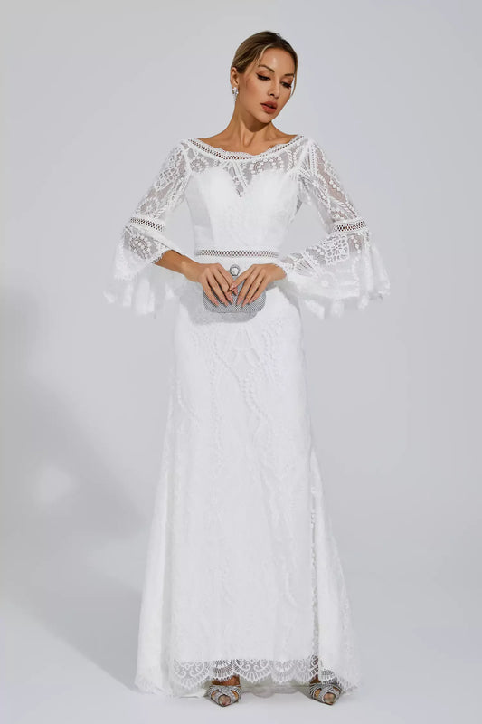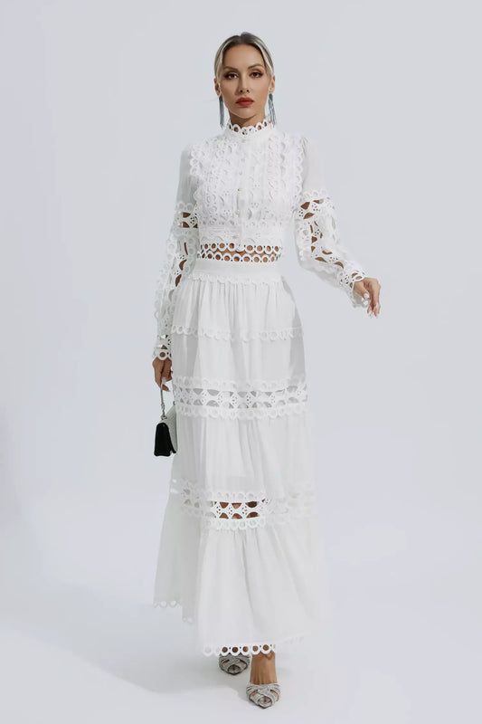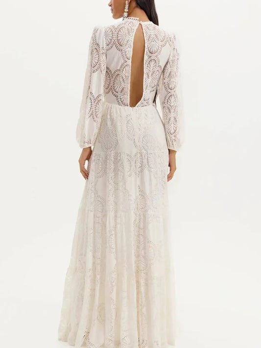 20% İndirimRemy Beyaz Uzun Kollu Dantel Uzun Elbise