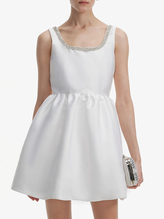 31% İndirimBoncuklu Yakalı Kolsuz Balon Etek Elbise