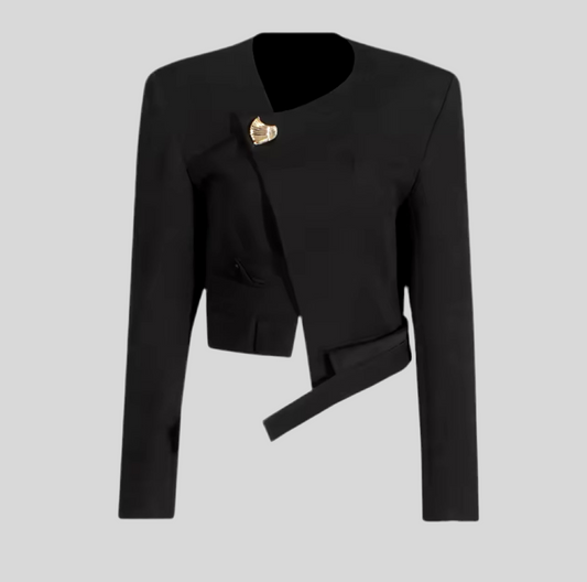Gwyneth Siyah Renkli Derin V Yakalı Kesik Blazer Takımı