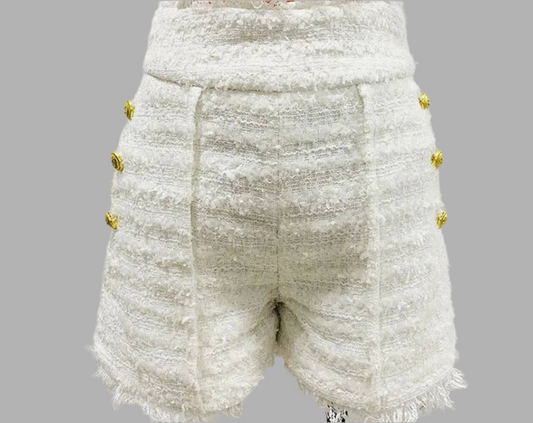 Kar Tanesi Beyaz Tüvit Blazer Ve Altın Düğmeli Şort Takım