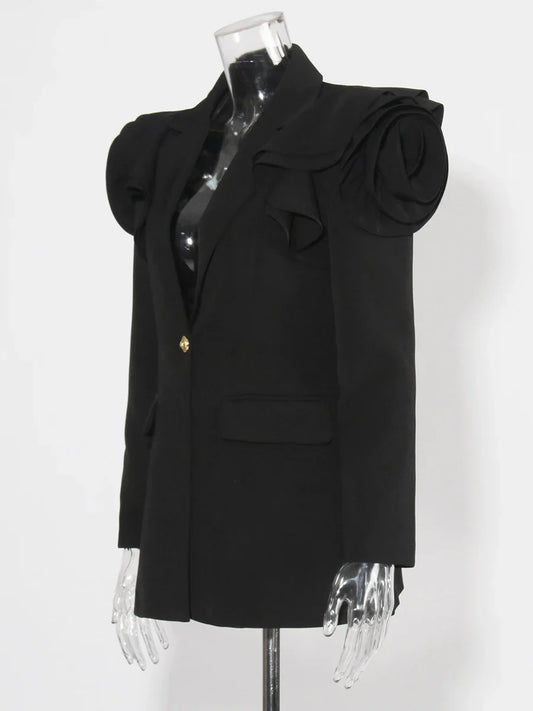 Eormenburh Parçalanmış Dantel Yakalı Blazer Siyah