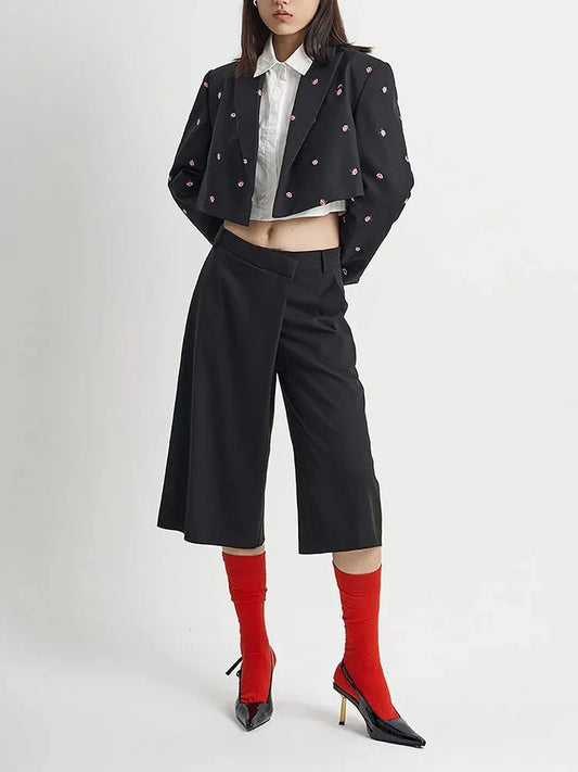 30% İndirimSiyah Renkli Indiana Çiçekli Süslü Blazer Takımı