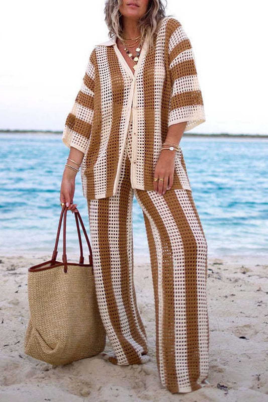 19% İndirimİçi Boş Çizgili Gömlek Örgü Takımı