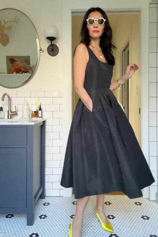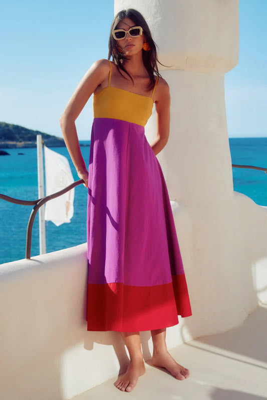 Trendy Çok Yönlü Düz Renk Spagetti Askılı Midi Elbise