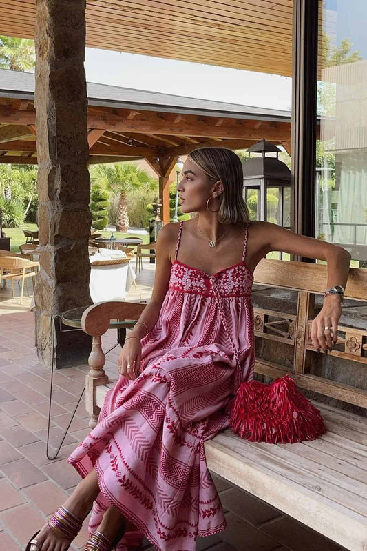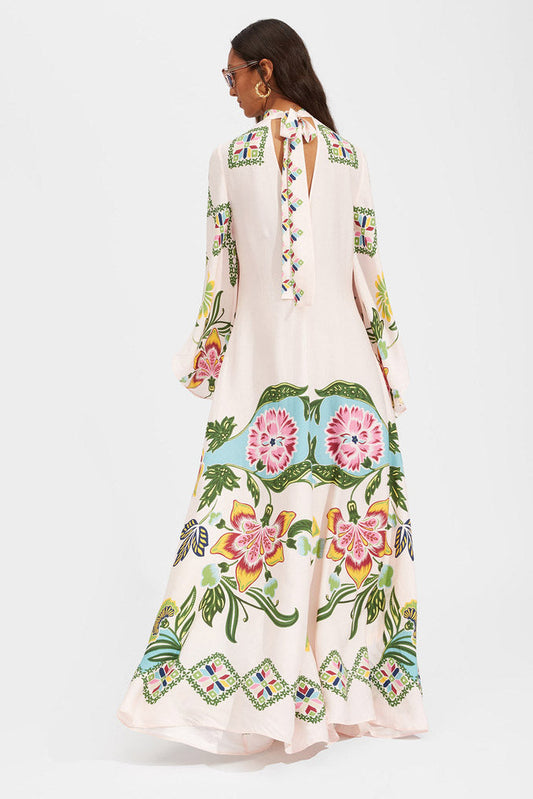 Boyundan Bağlamalı Resort Tarzı Baskılı Maxi Elbise