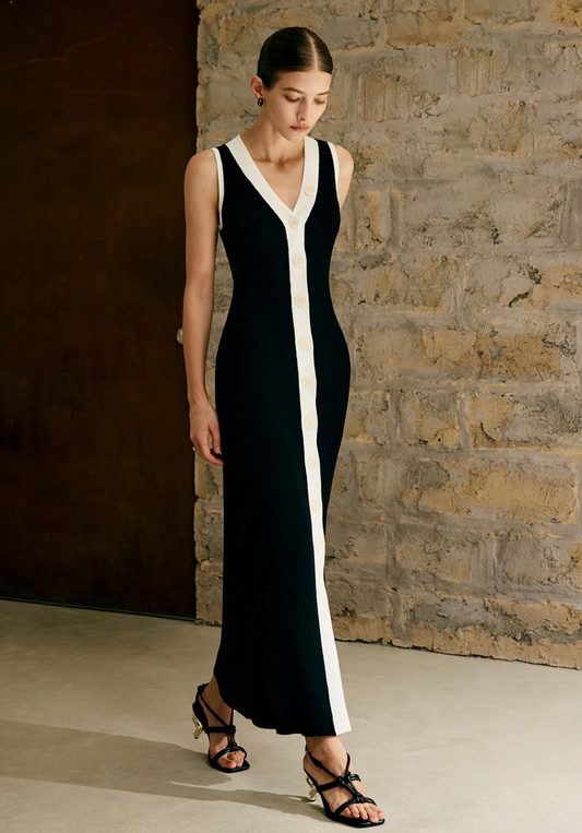 25% İndirimİki Renkli Boyundan Bağlamalı Maxi Elbise