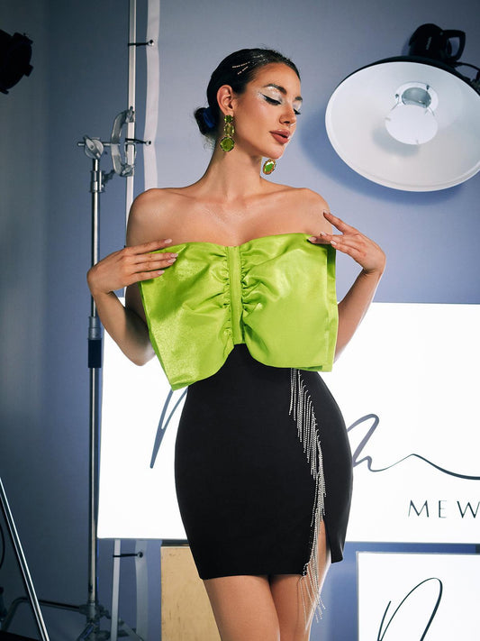 Osiris Yeşil Renkli Yapay Elmas Kesik Saçaklı Bandaj Elbise