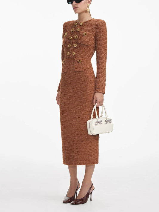 21% İndirimAltın Düğme Detaylı Koyu Kahverengi Tüvit Elbise