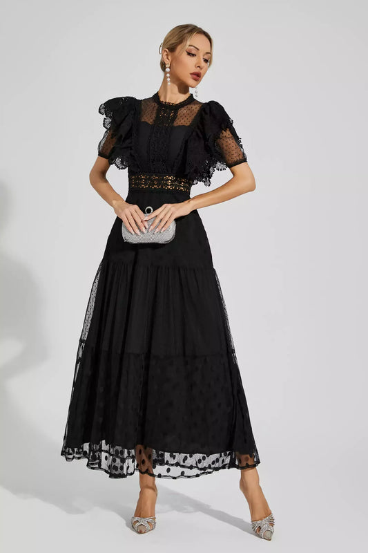 25% İndirimNoor Siyah Puantiyeli Uzun Elbise