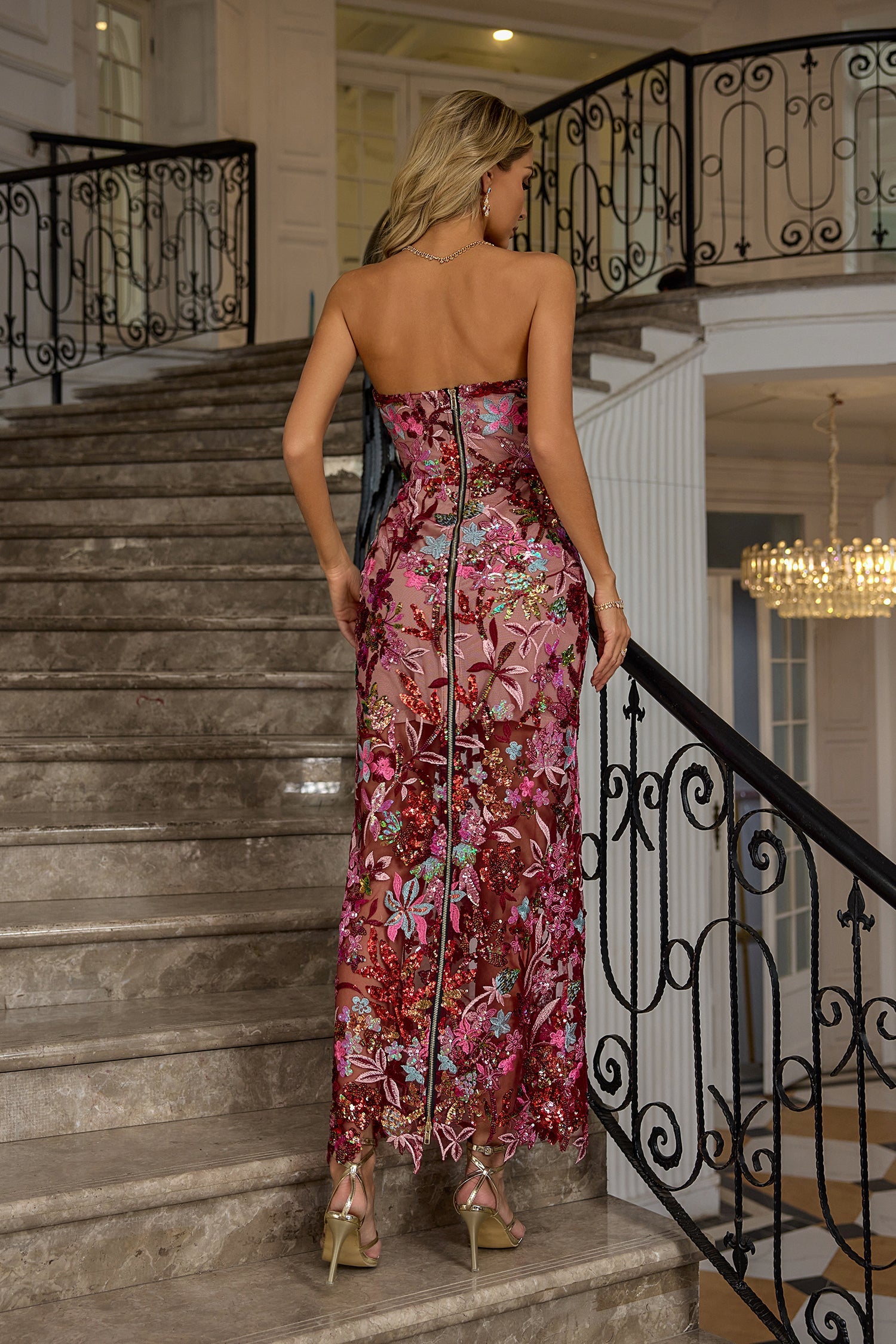 Leanna Kırmızı Çiçek İşlemeli Uzun Elbise