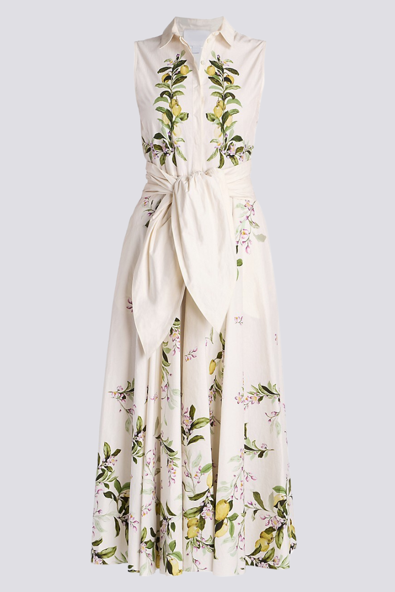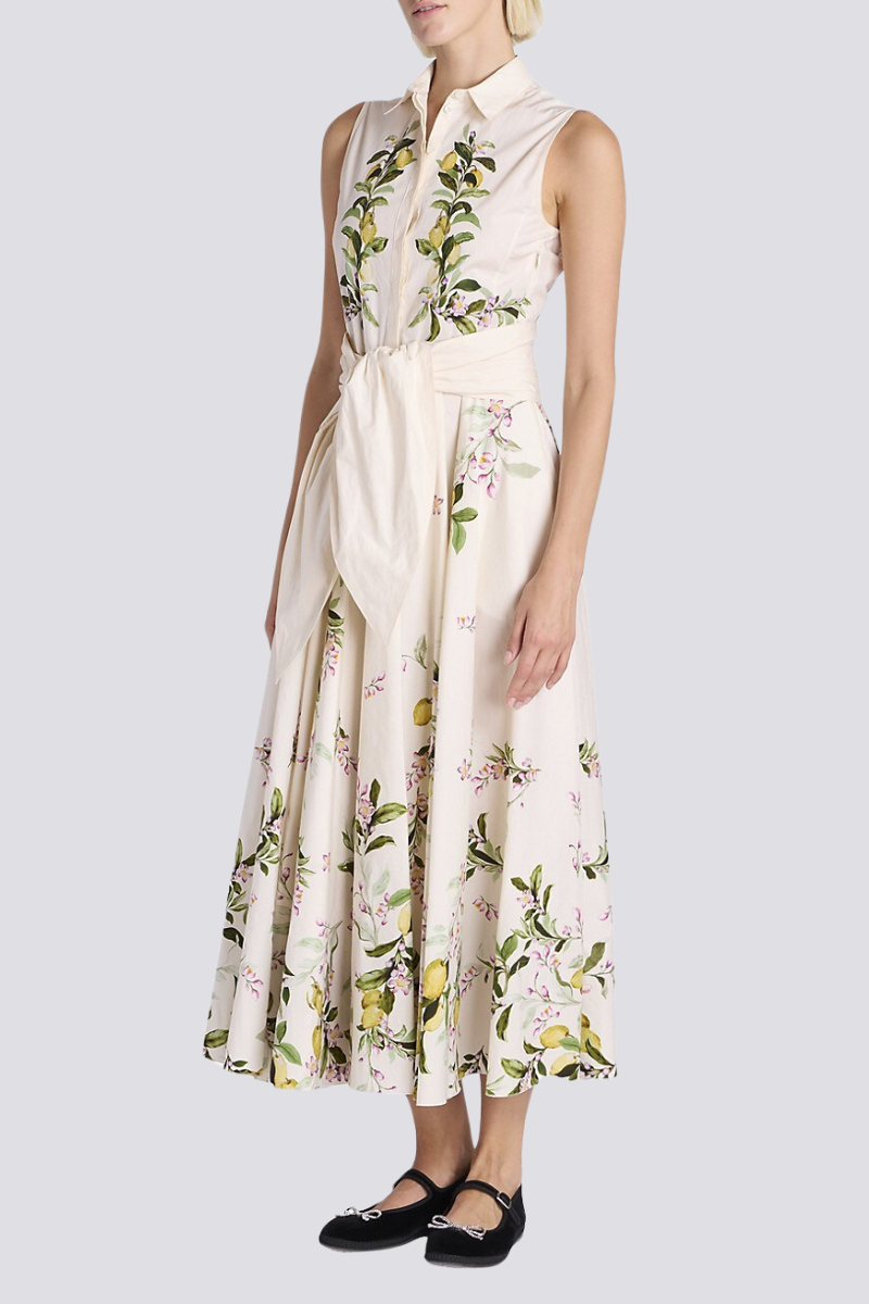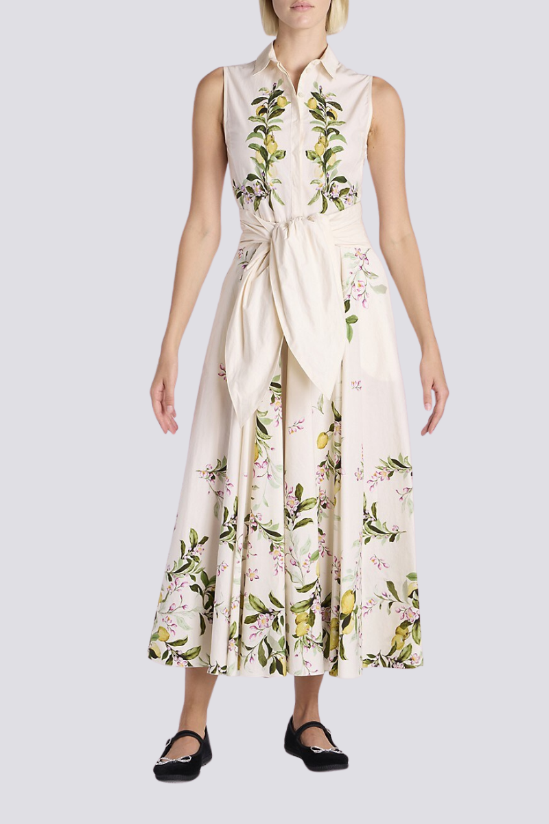 Adelle Çiçekli Fiyonklu Kolsuz Uzun Elbise