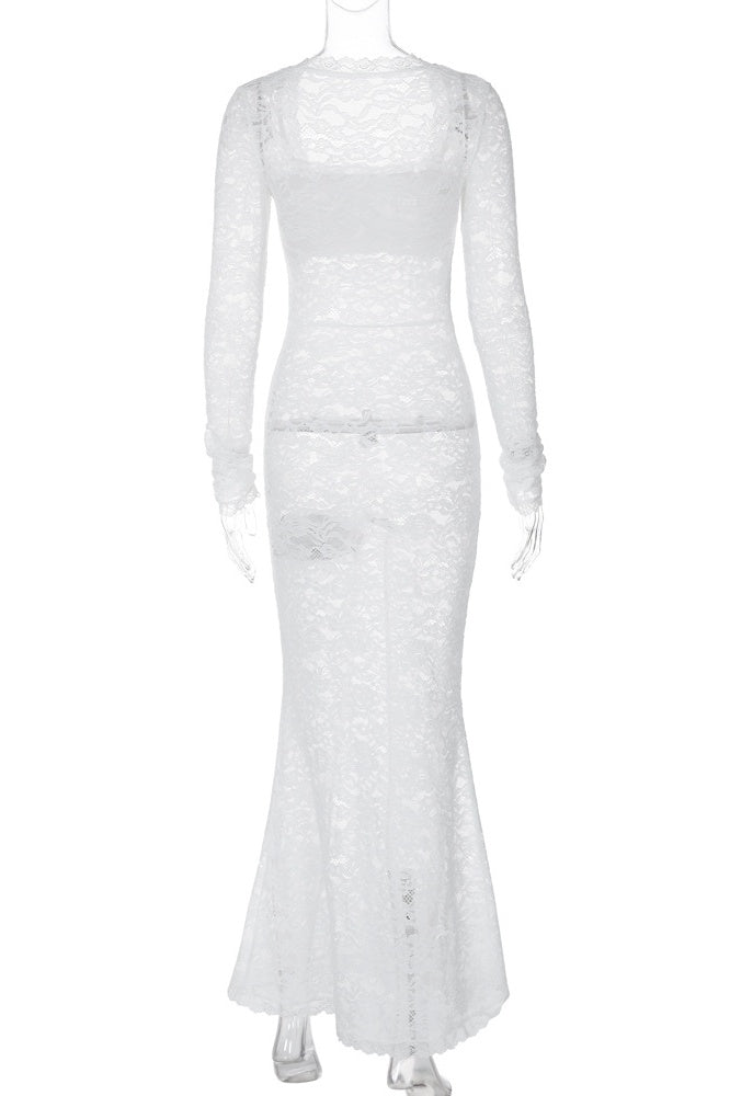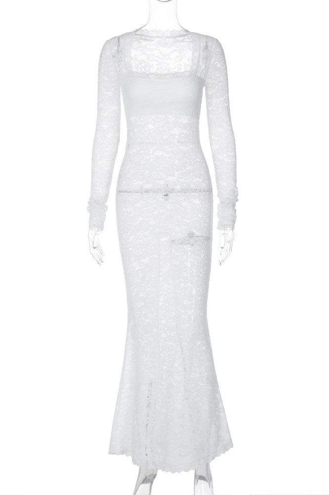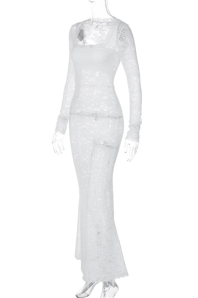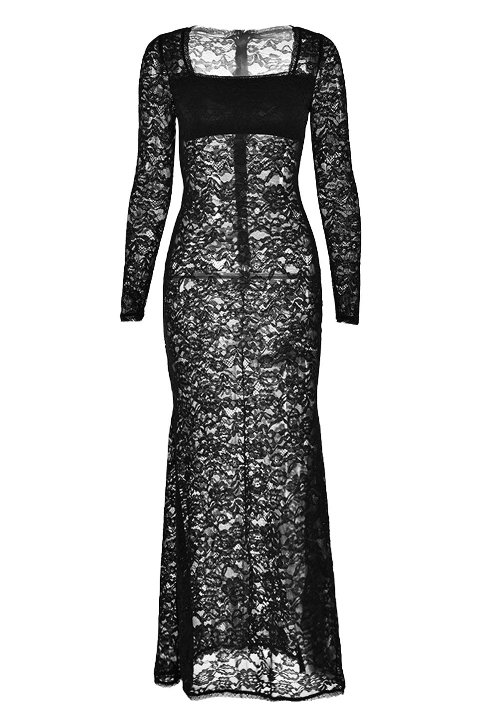 Bertha Kare Yaka Dantel Uzun Elbise