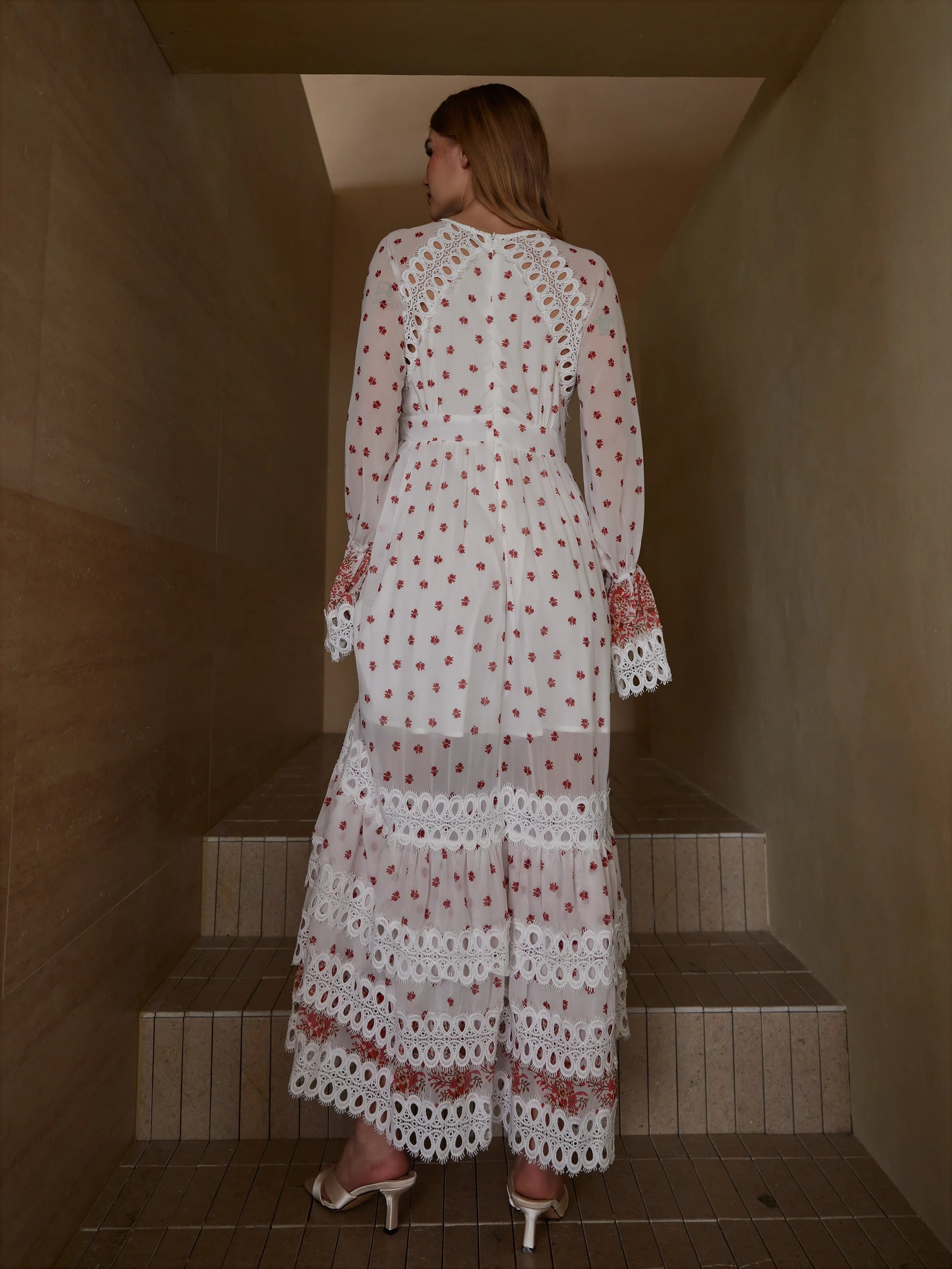 28% İndirimJazlyn Beyaz Çiçekli Dantel Midi Elbise