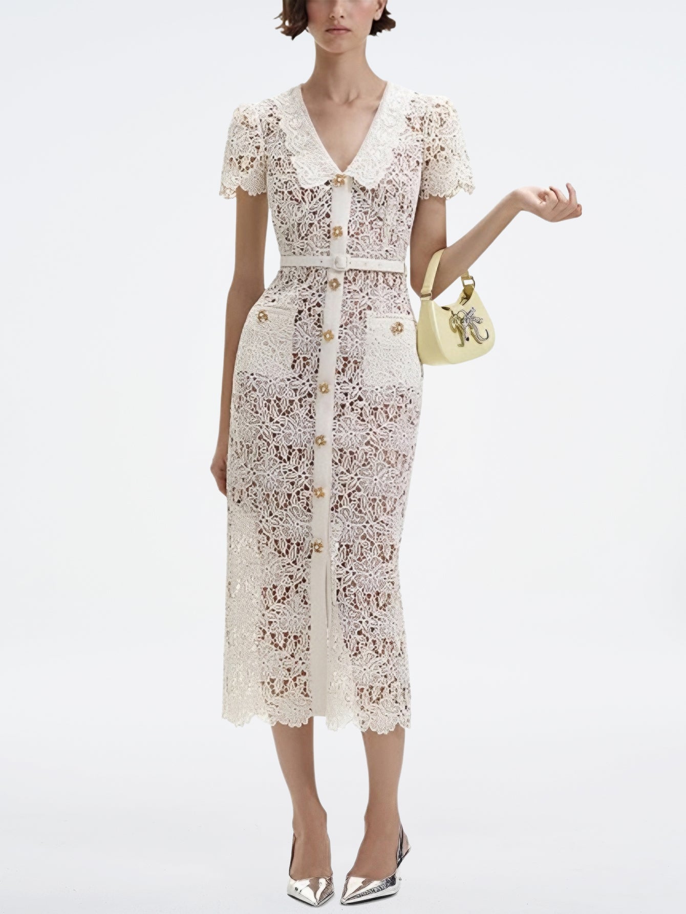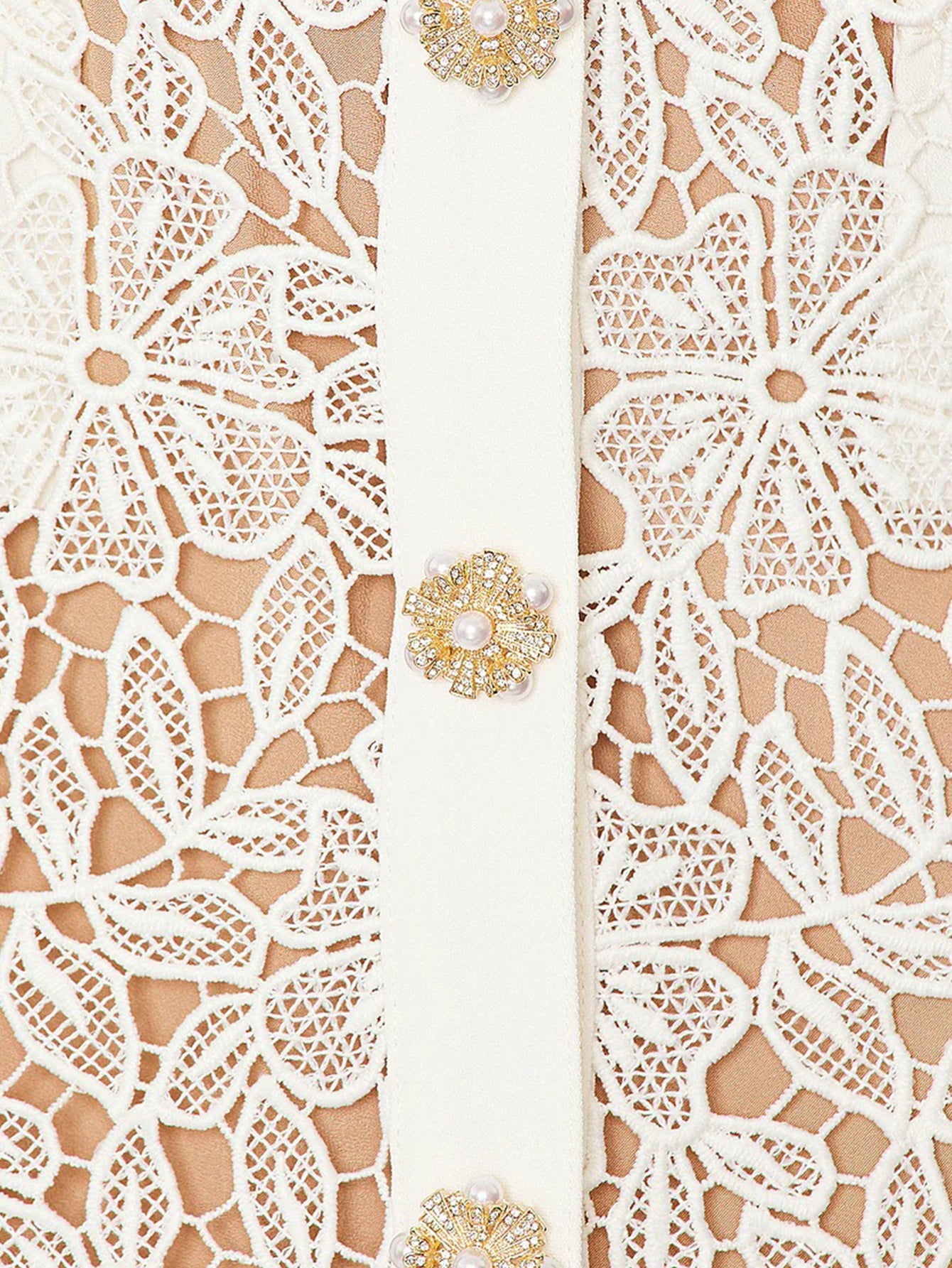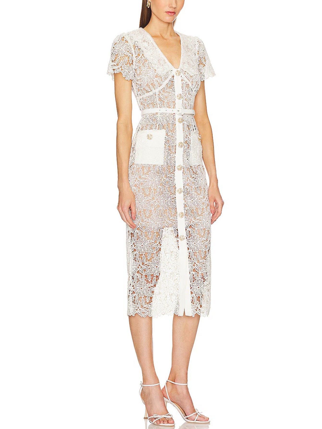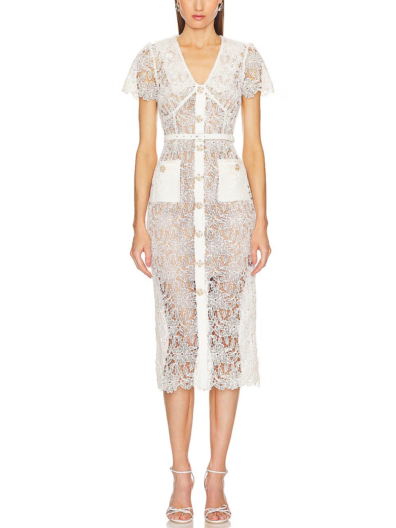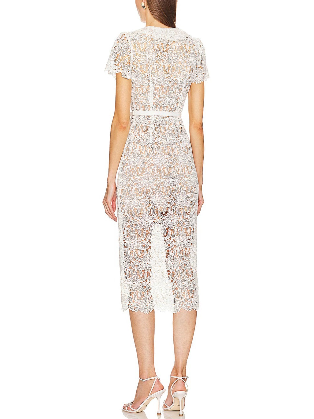 28% İndirimJazlyn Beyaz Çiçekli Dantel Midi Elbise