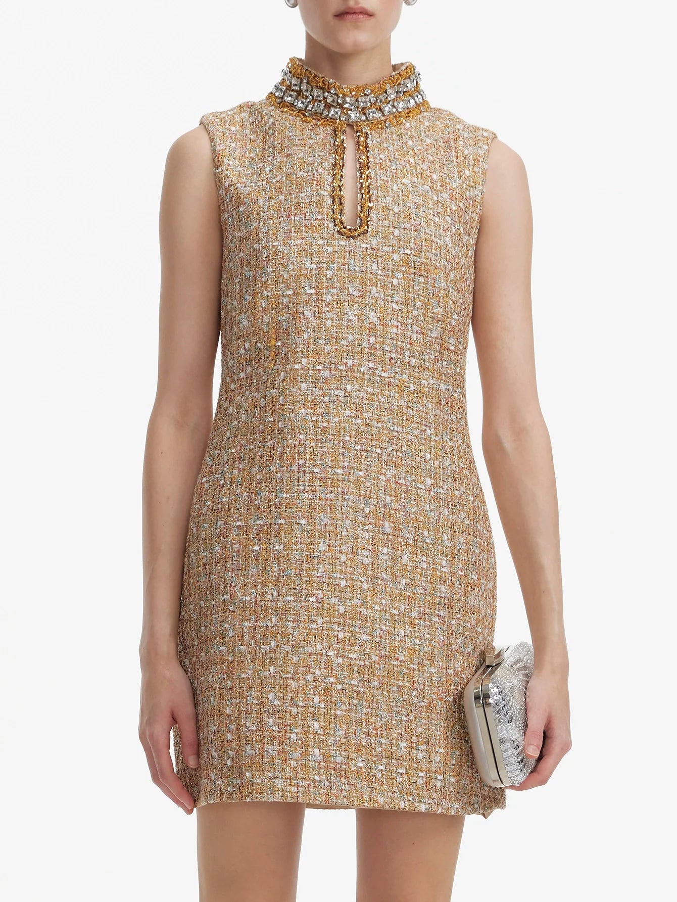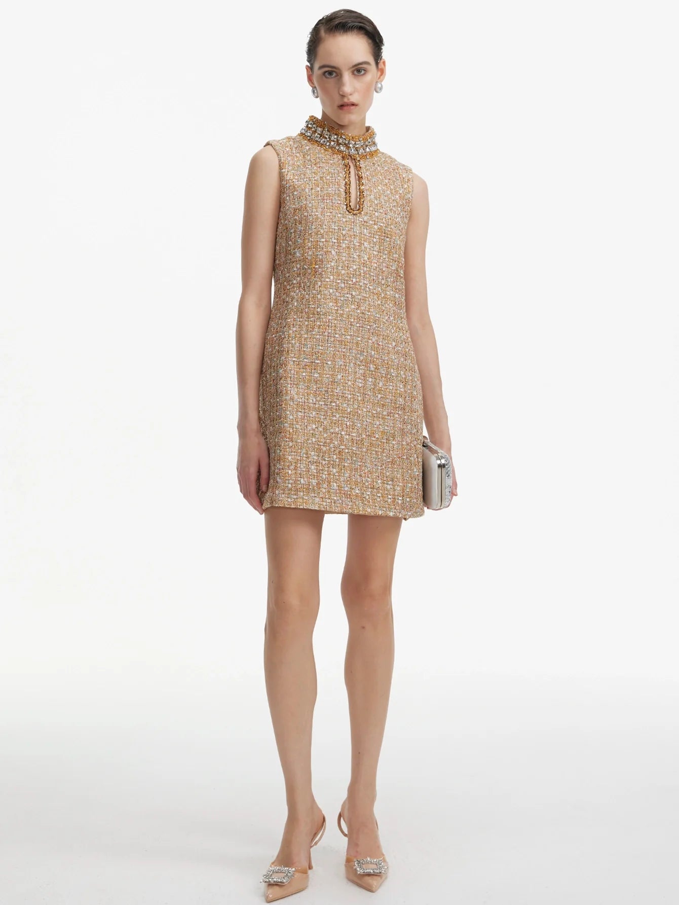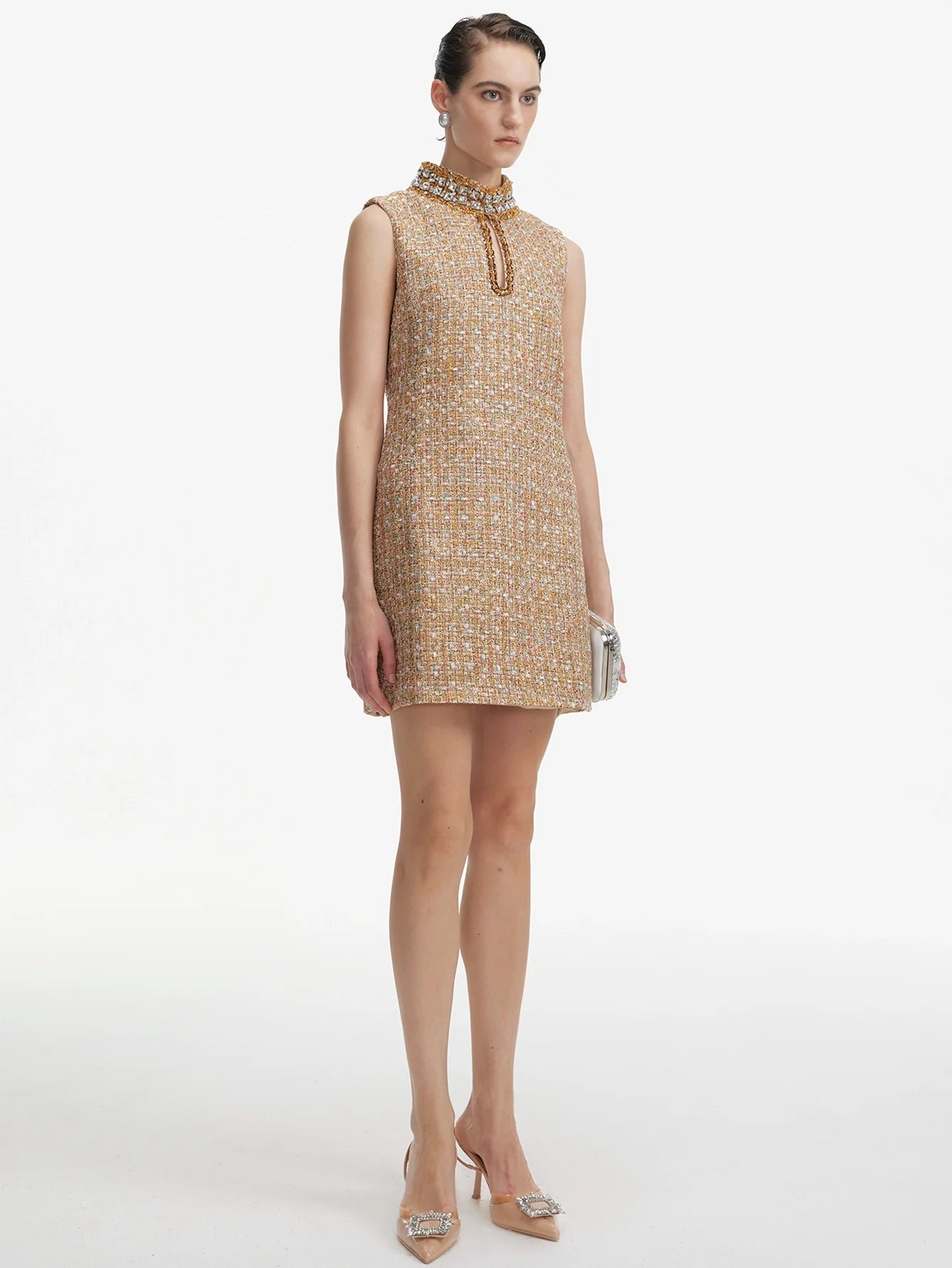 Kristal Yakalı Şık Tüvit Shift Elbise