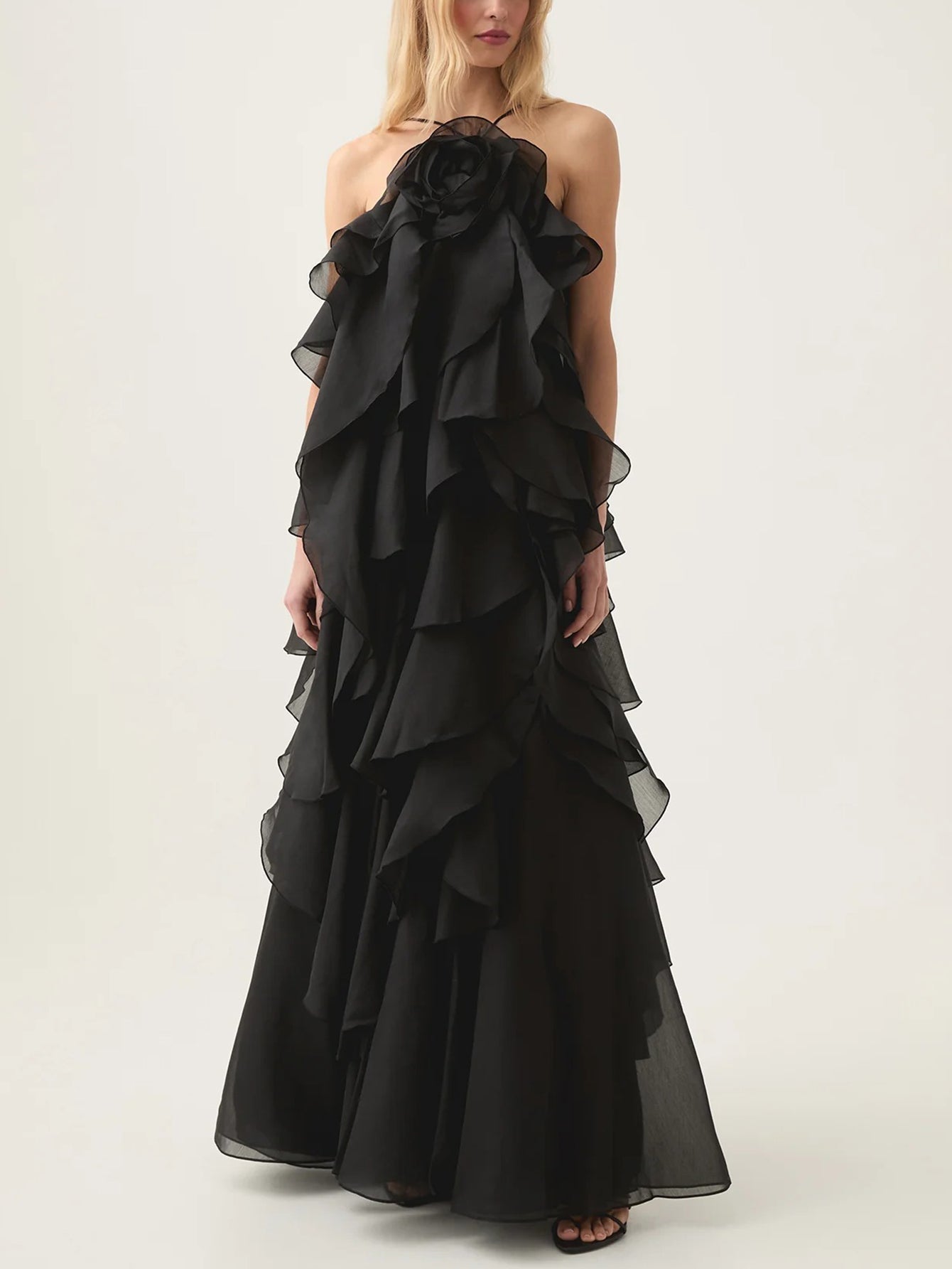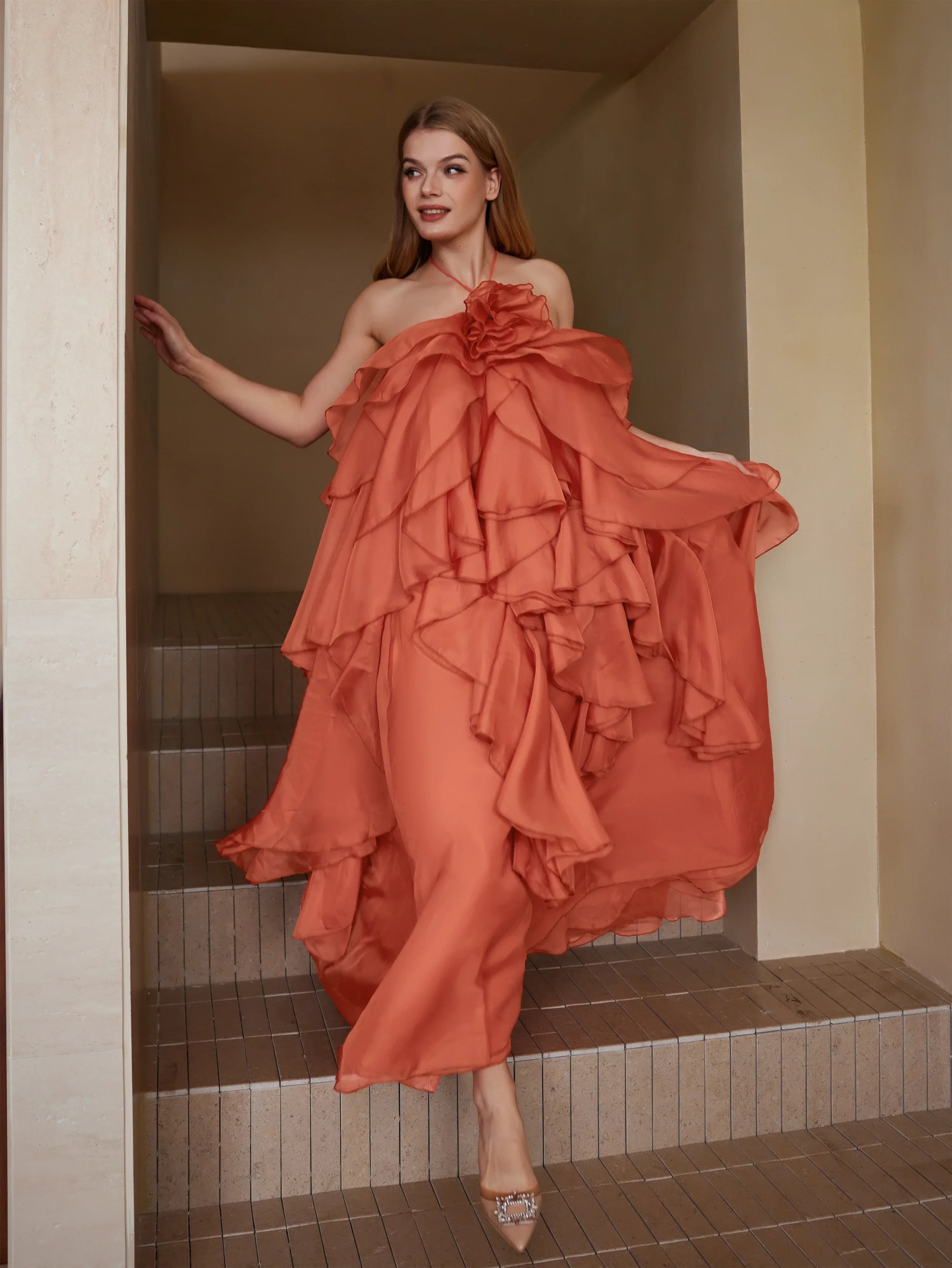 Zarif Ve Zarif Fırfırlı Gece Elbisesi