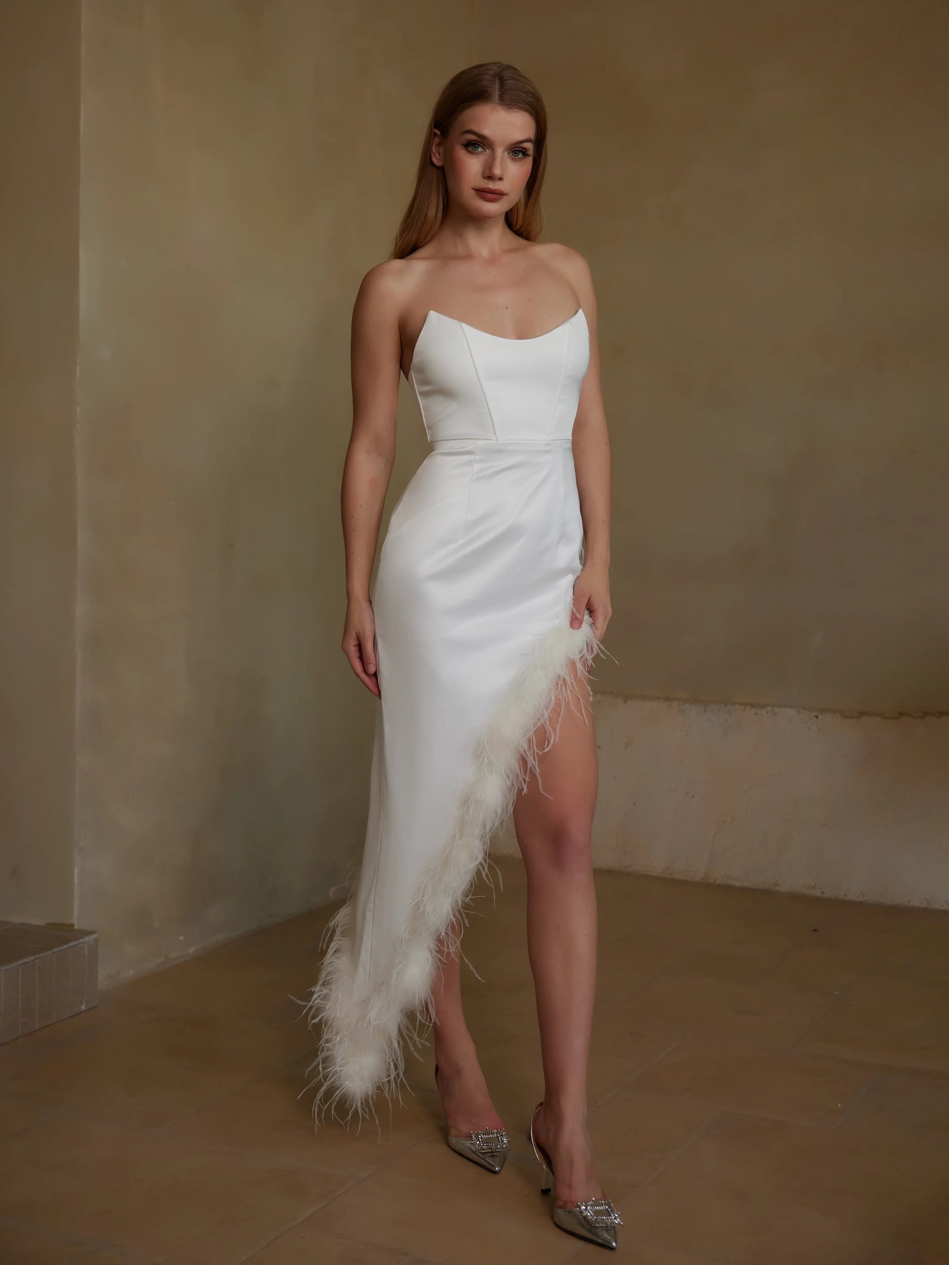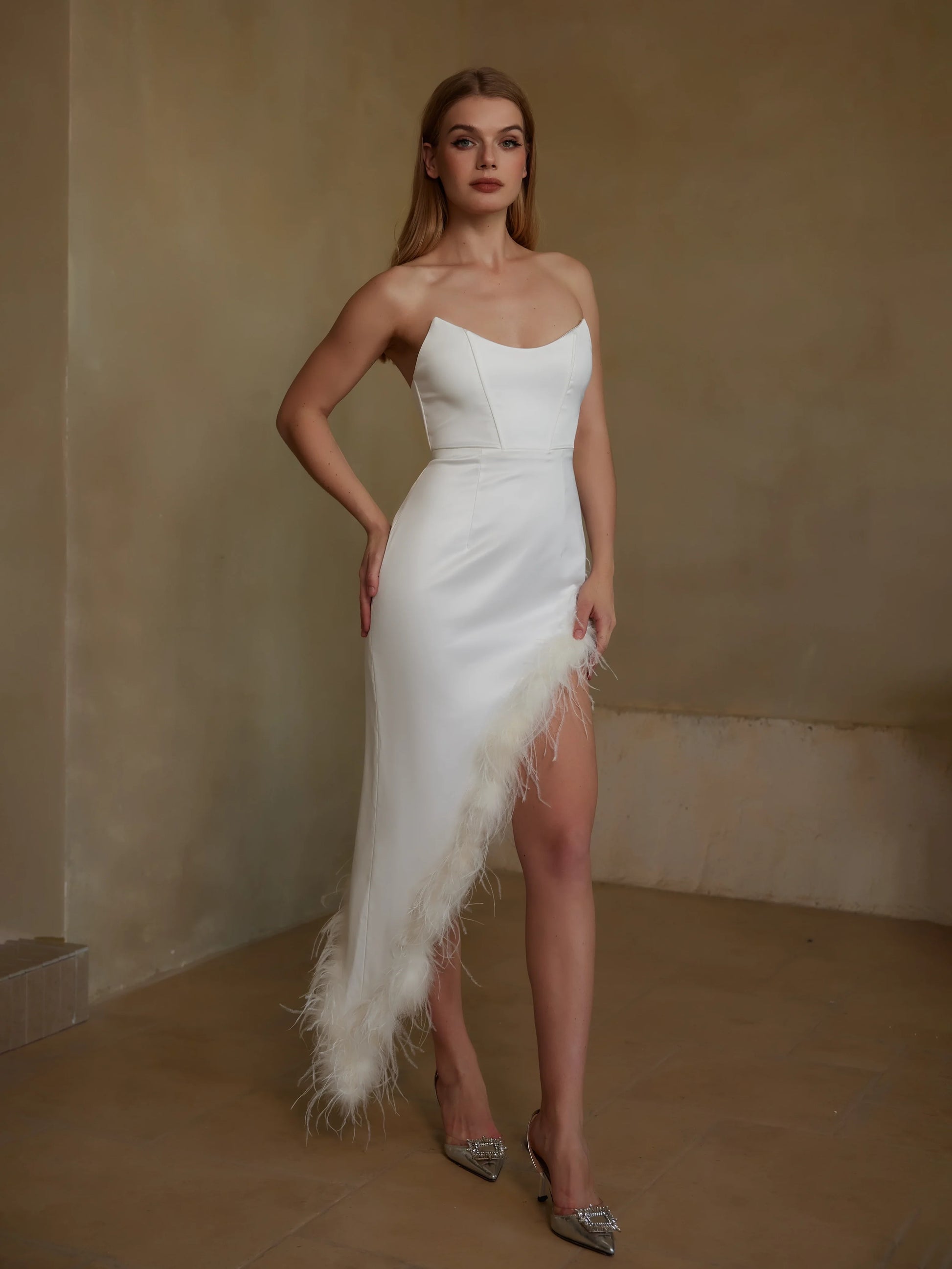Elbiselerimiz, çağdaş tasarım unsurlarıyla klasik güzellik kavramını yeniden tanımlıyor. Zarif, vücuda oturan siluet, zarif bir görünüm yaratarak sizi gecenin parlayan yıldızı yapar. İster bir galaya, ister bir düğüne veya resmi bir akşam yemeğine katılın, bu elbise zahmetsizce göz alıcı bir görünüm için tercihiniz olacak.