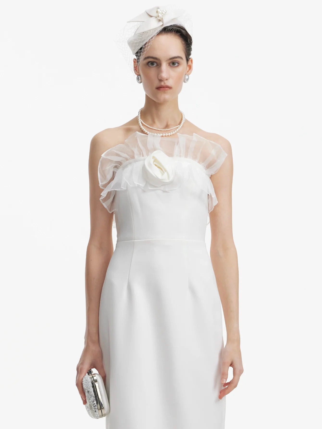 28% İndirimJazlyn Beyaz Çiçekli Dantel Midi Elbise
