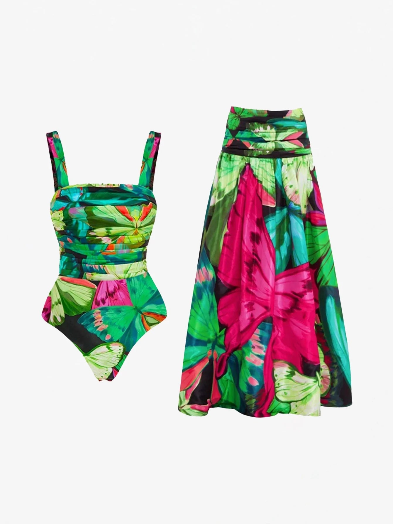 Zarif Puantiyeli Retro Volanlı İki Parçalı Takım