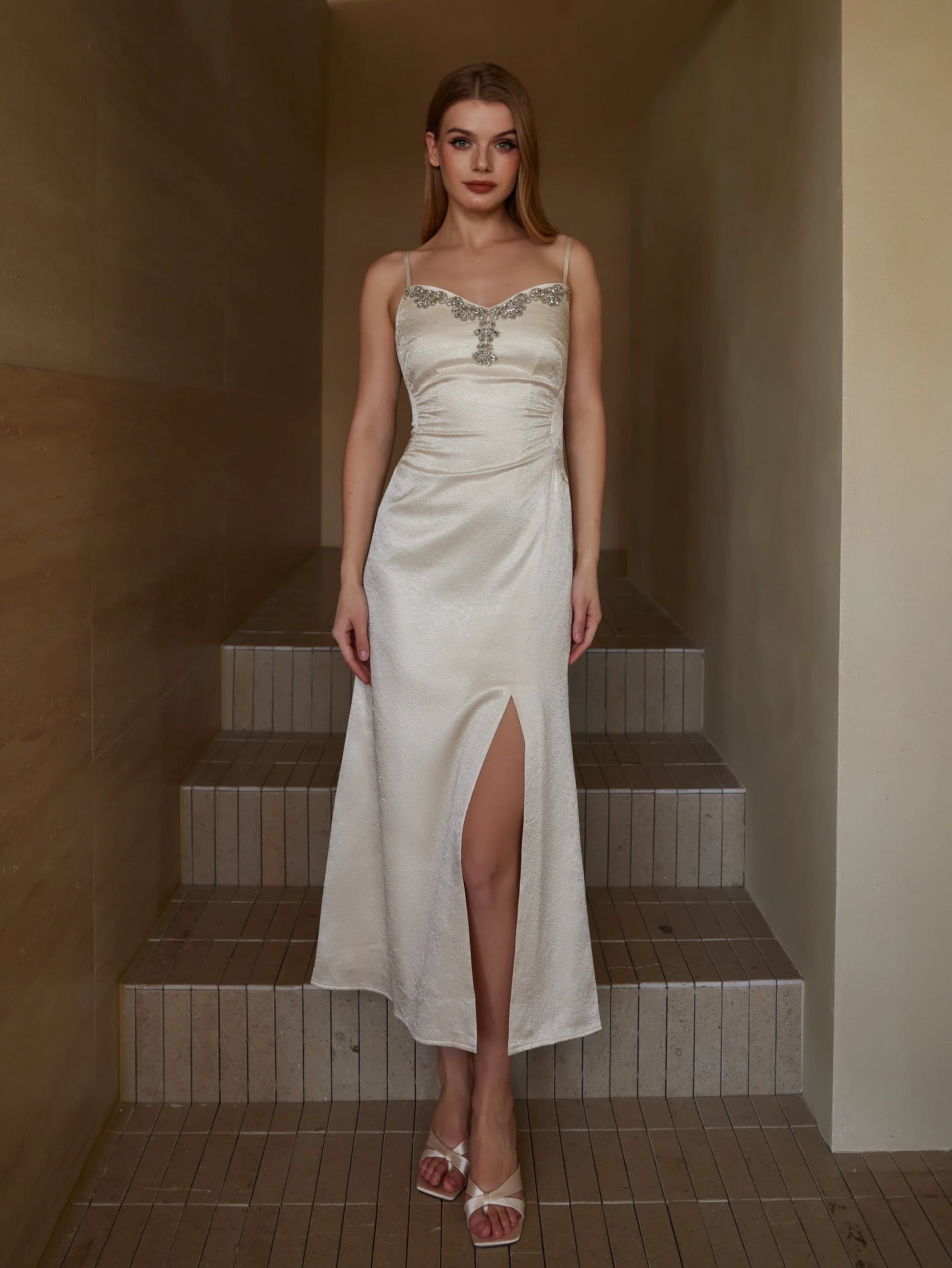 Elbiselerimiz, çağdaş tasarım unsurlarıyla klasik güzellik kavramını yeniden tanımlıyor. Zarif, vücuda oturan siluet, zarif bir görünüm yaratarak sizi gecenin parlayan yıldızı yapar. İster bir galaya, ister bir düğüne veya resmi bir akşam yemeğine katılın, bu elbise zahmetsizce göz alıcı bir görünüm için tercihiniz olacak.