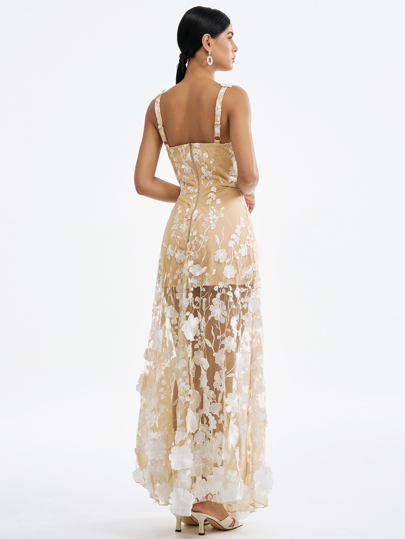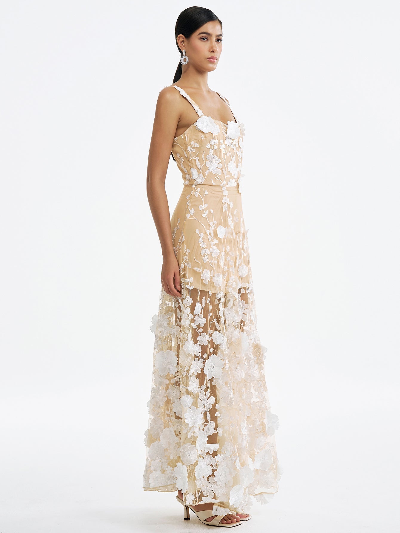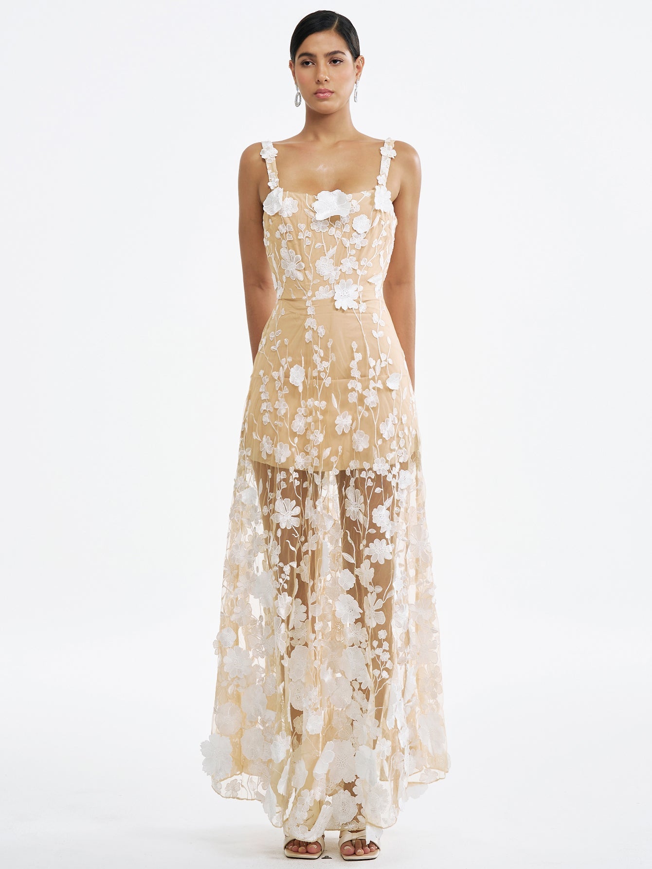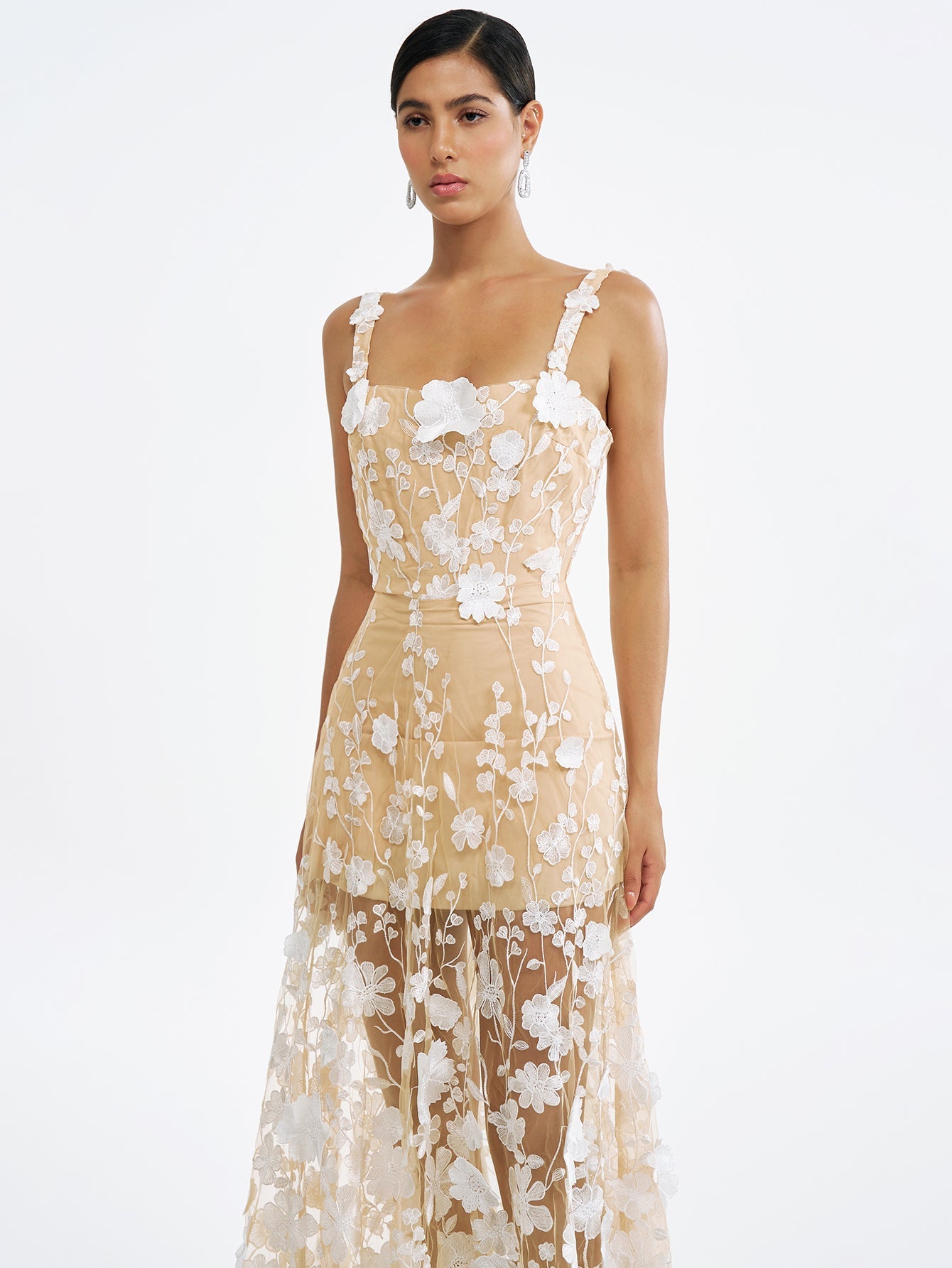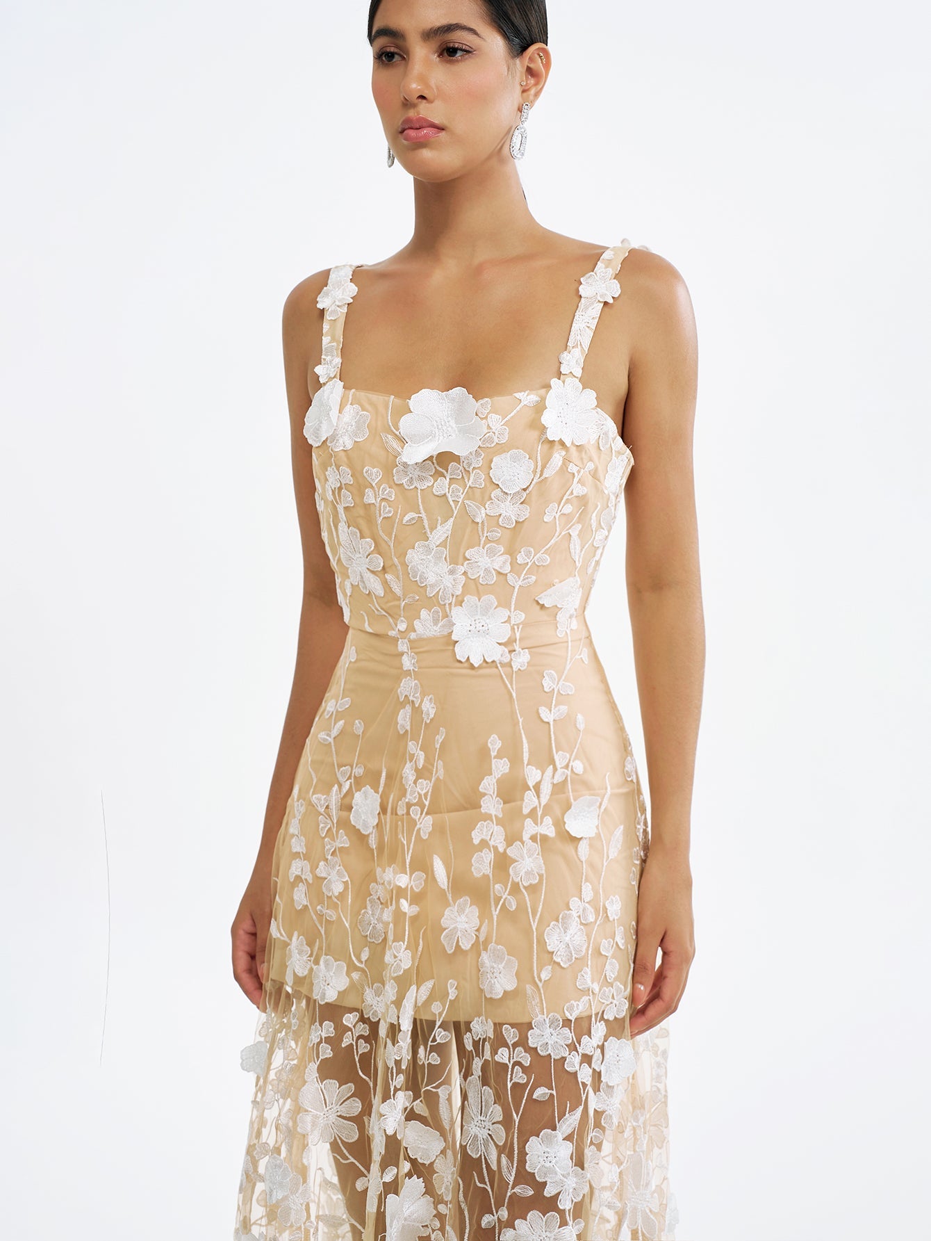 Çiçek İşlemeli Tül Maksi Elbise - Ruhani & Romantik