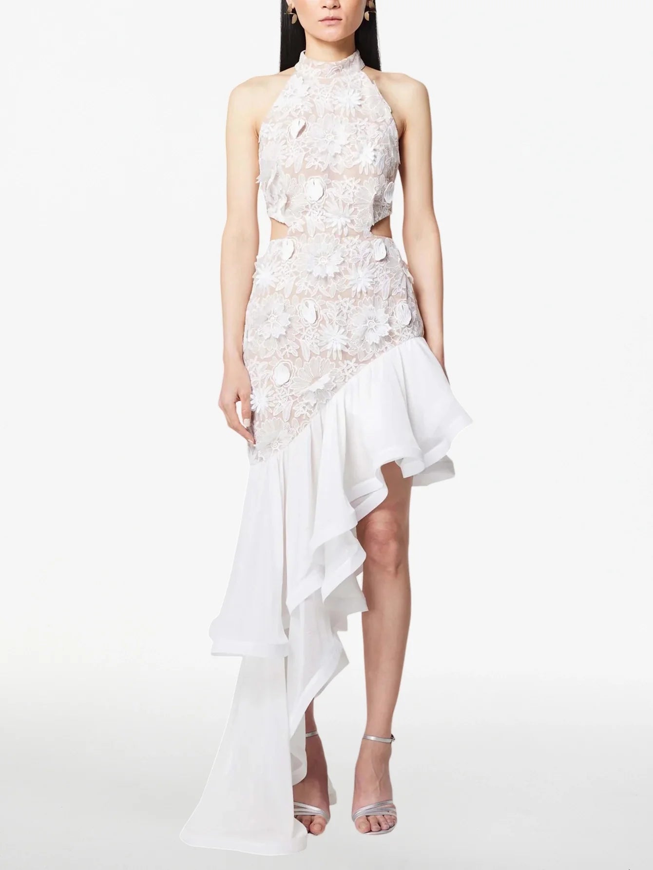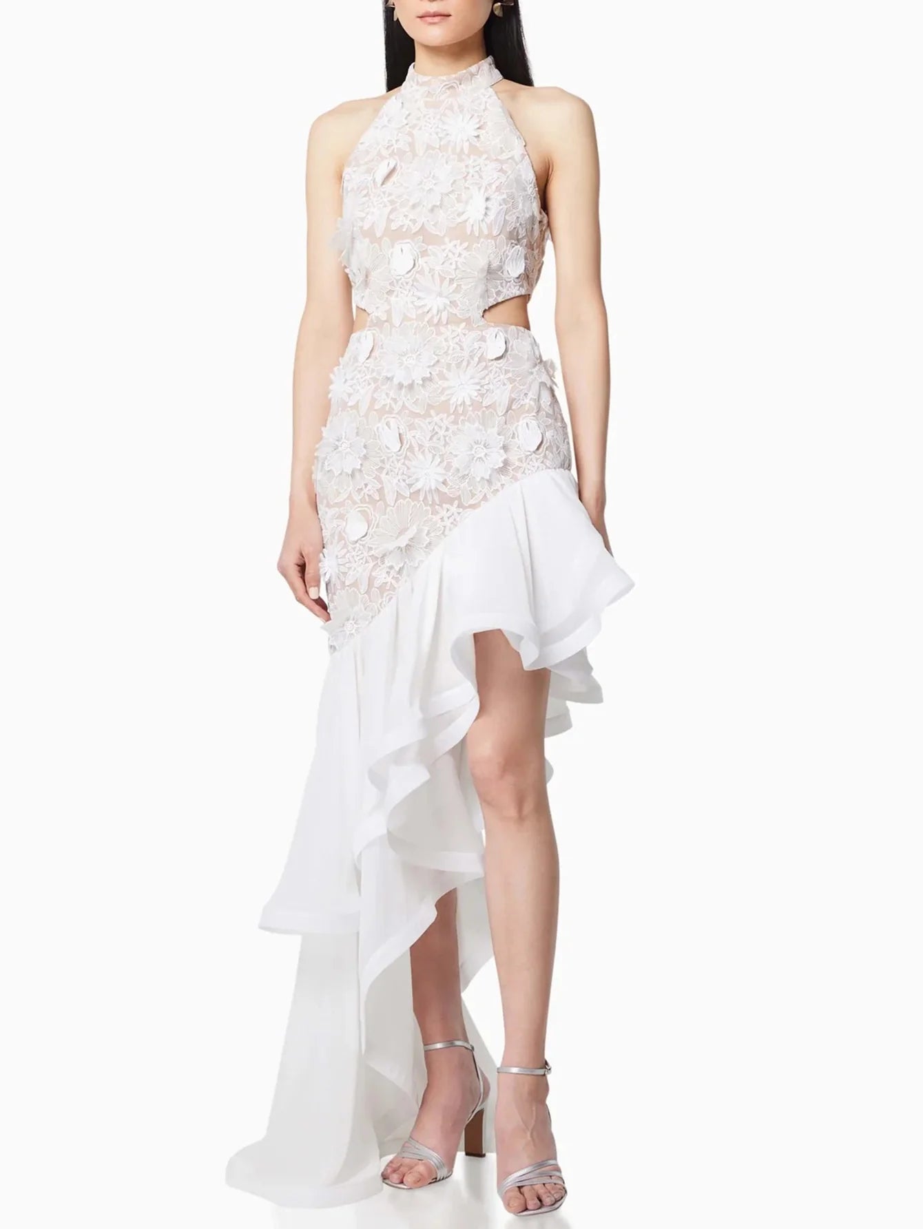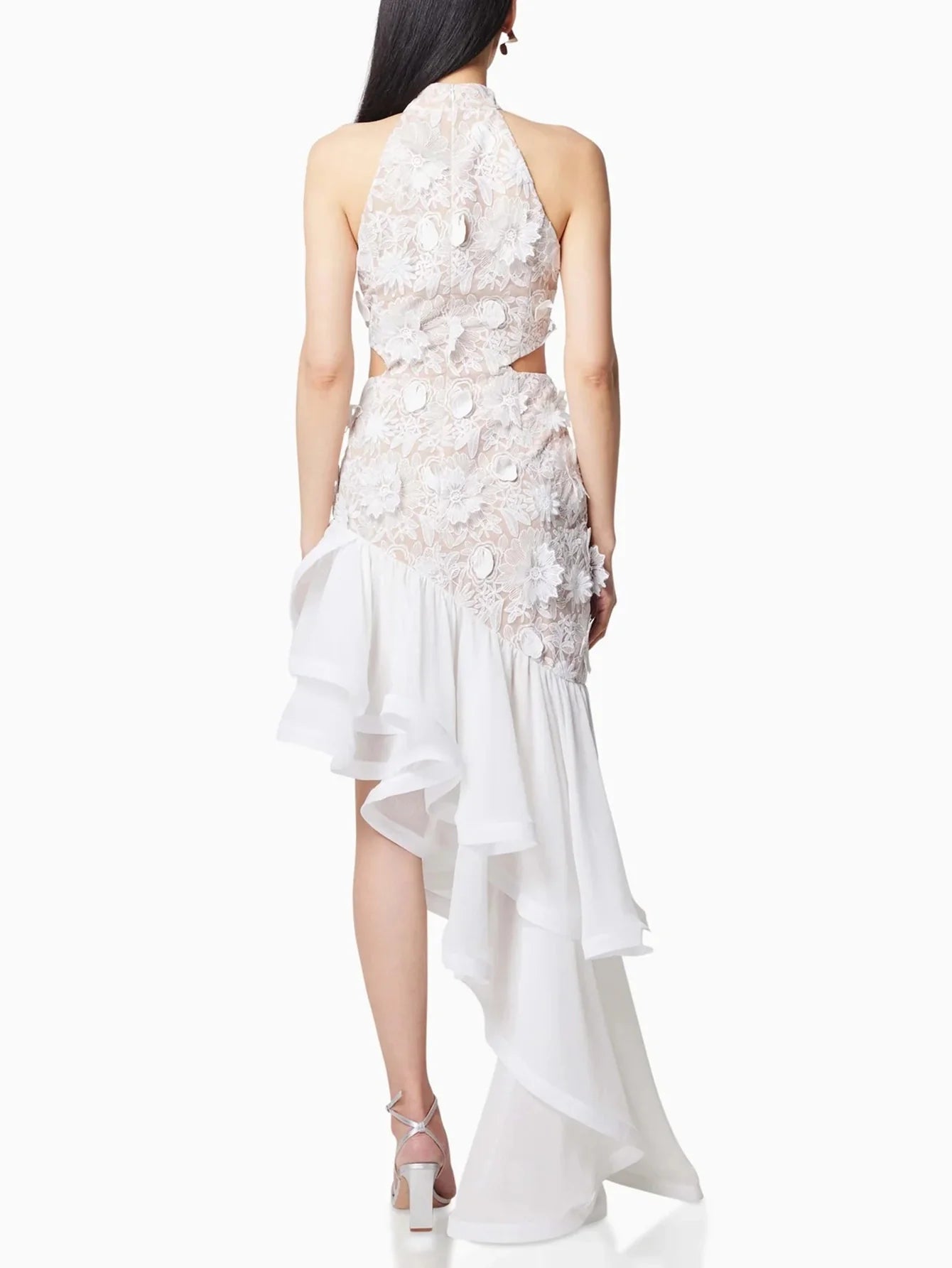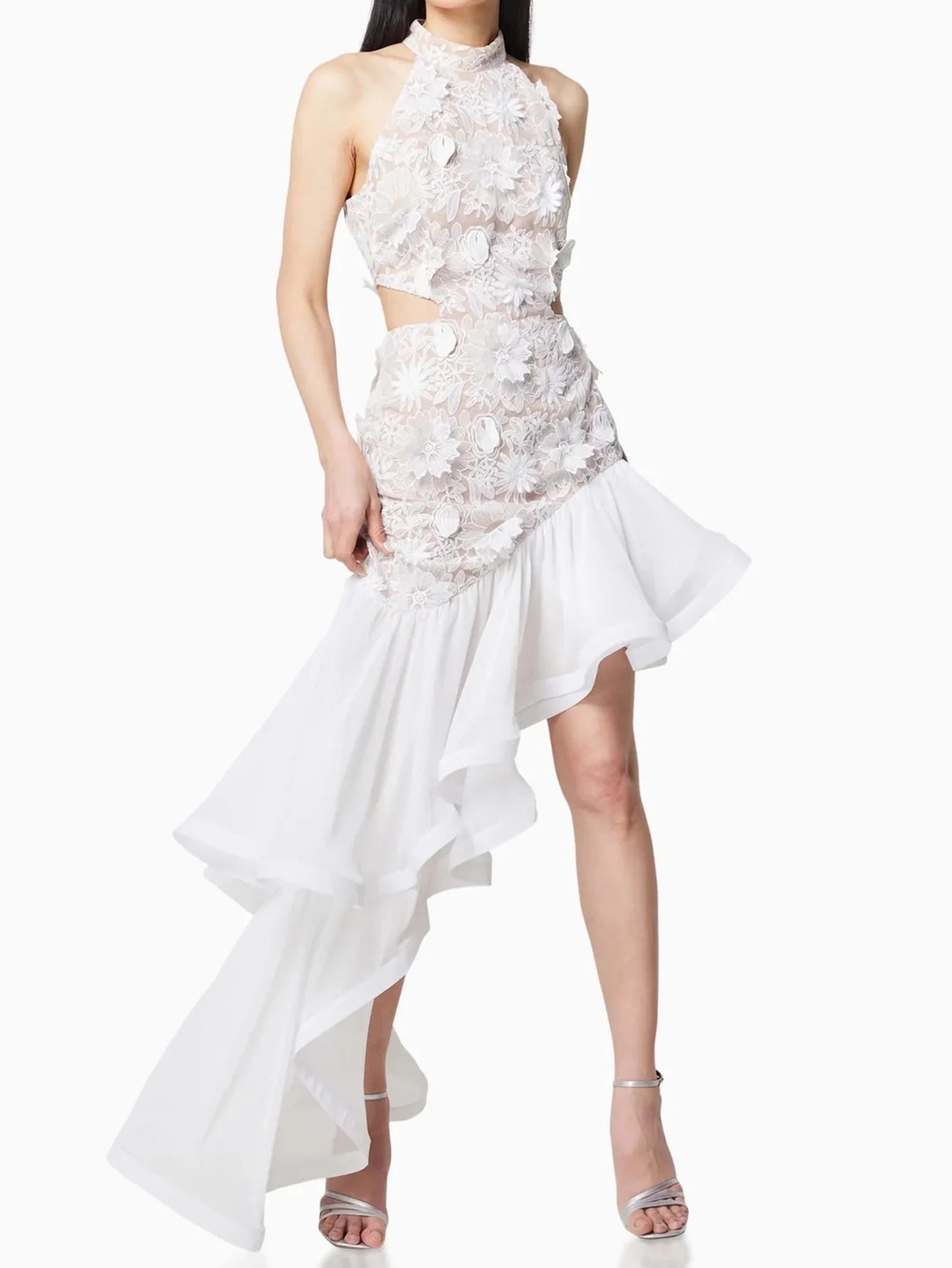 Çiçek Dantel Üstü Asimetrik Etek Ucu Elbise