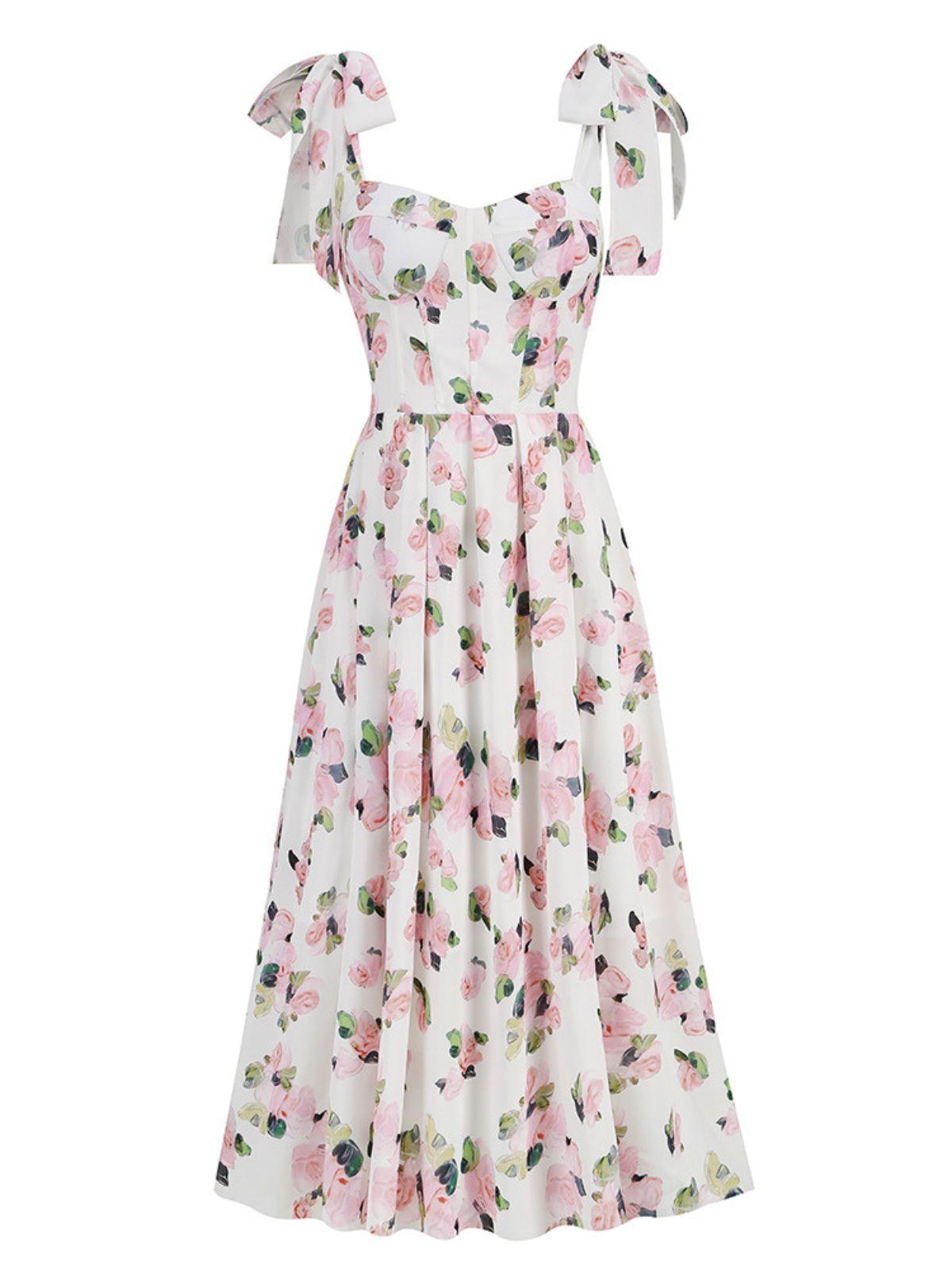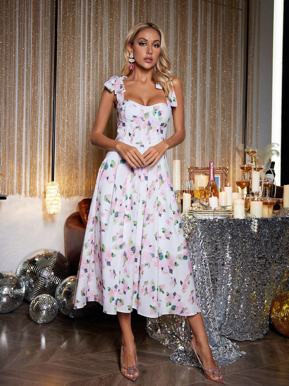 28% İndirimJazlyn Beyaz Çiçekli Dantel Midi Elbise