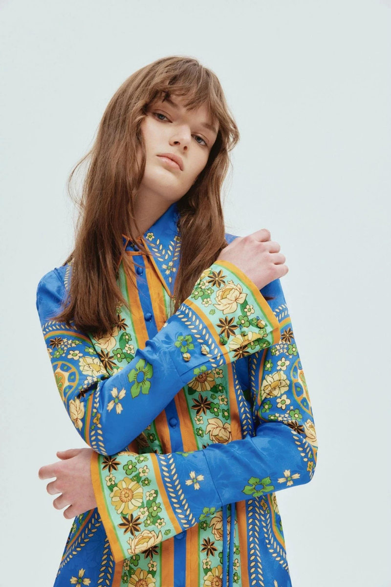 Lisbeth Uzun Kollu Çiçekli Mini Elbise
