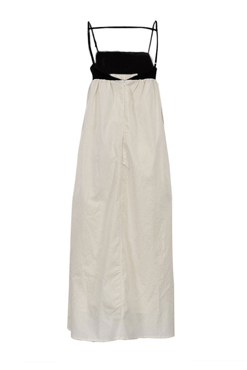 Bol Askılı Siyah Beyaz Patchwork Maxi Elbise