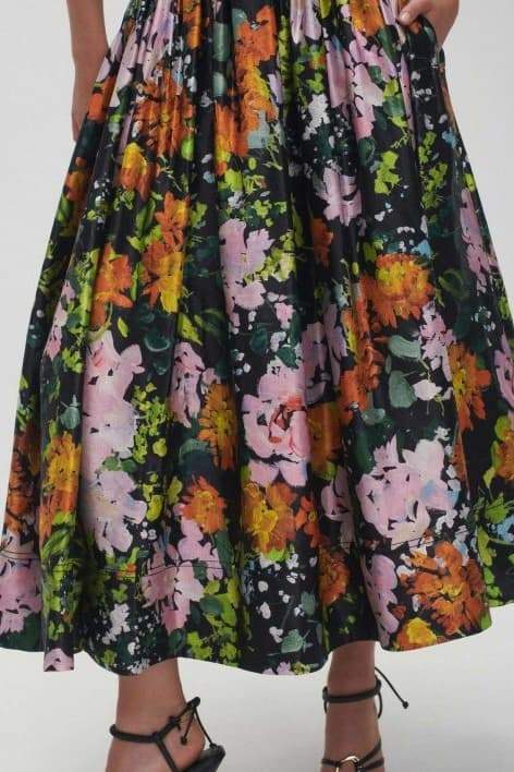 26% İndirimJazlyn Siyah Çiçekli Dantel Midi Elbise