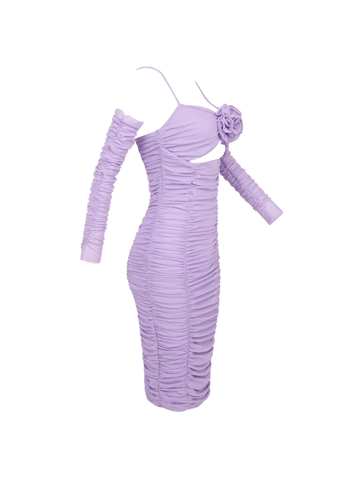 Monga İnce Çiçek Büzgülü Midi Elbise