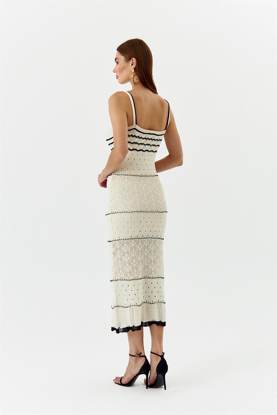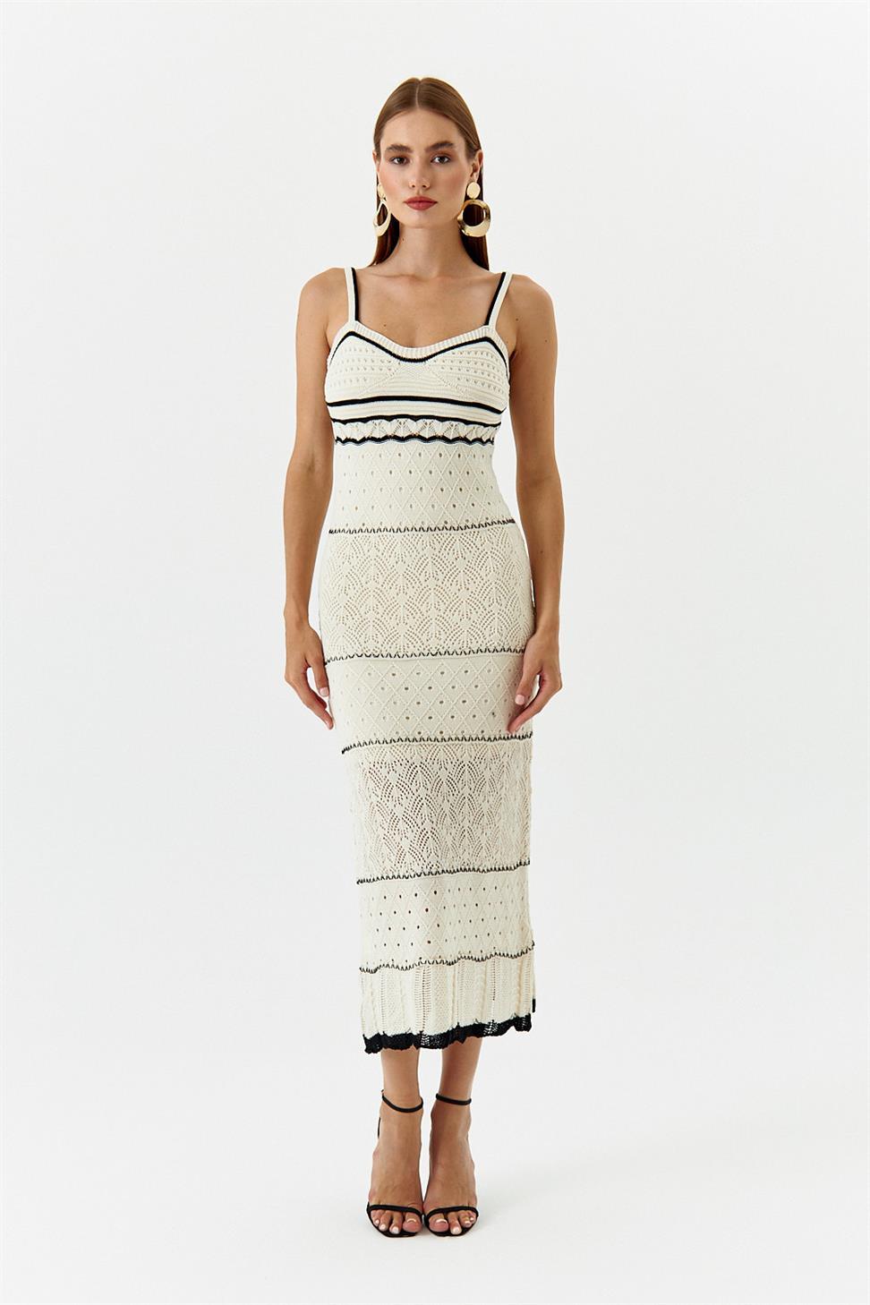 Nan Kontrast Tiğ İşi Uzun Askılı Elbise