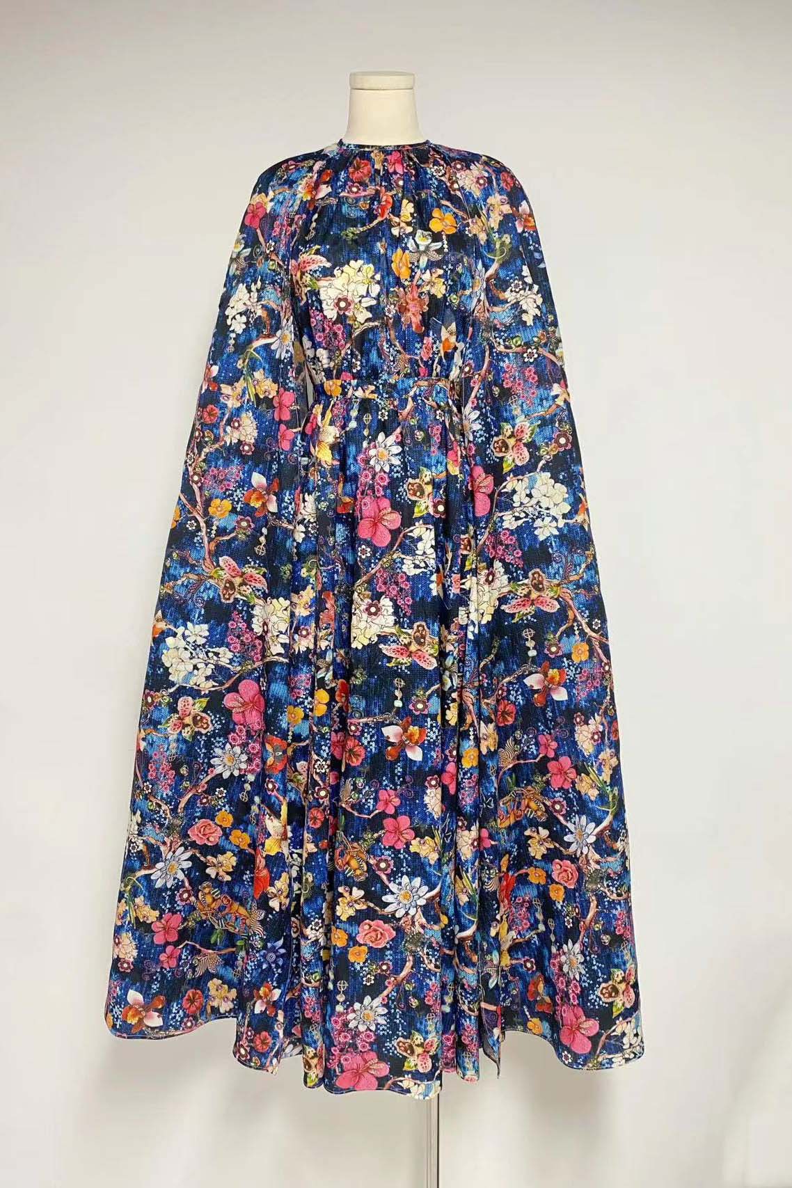 Nola Yuvarlak Yaka Pelerin Kollu Uzun Elbise