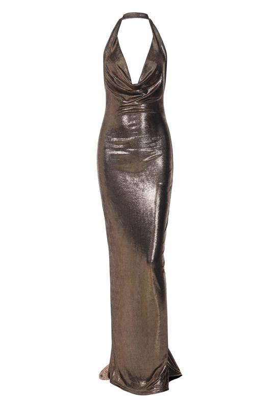 Ophelia Halter Yaka Sırtı Açık Uzun Elbise