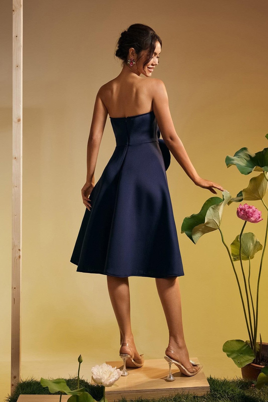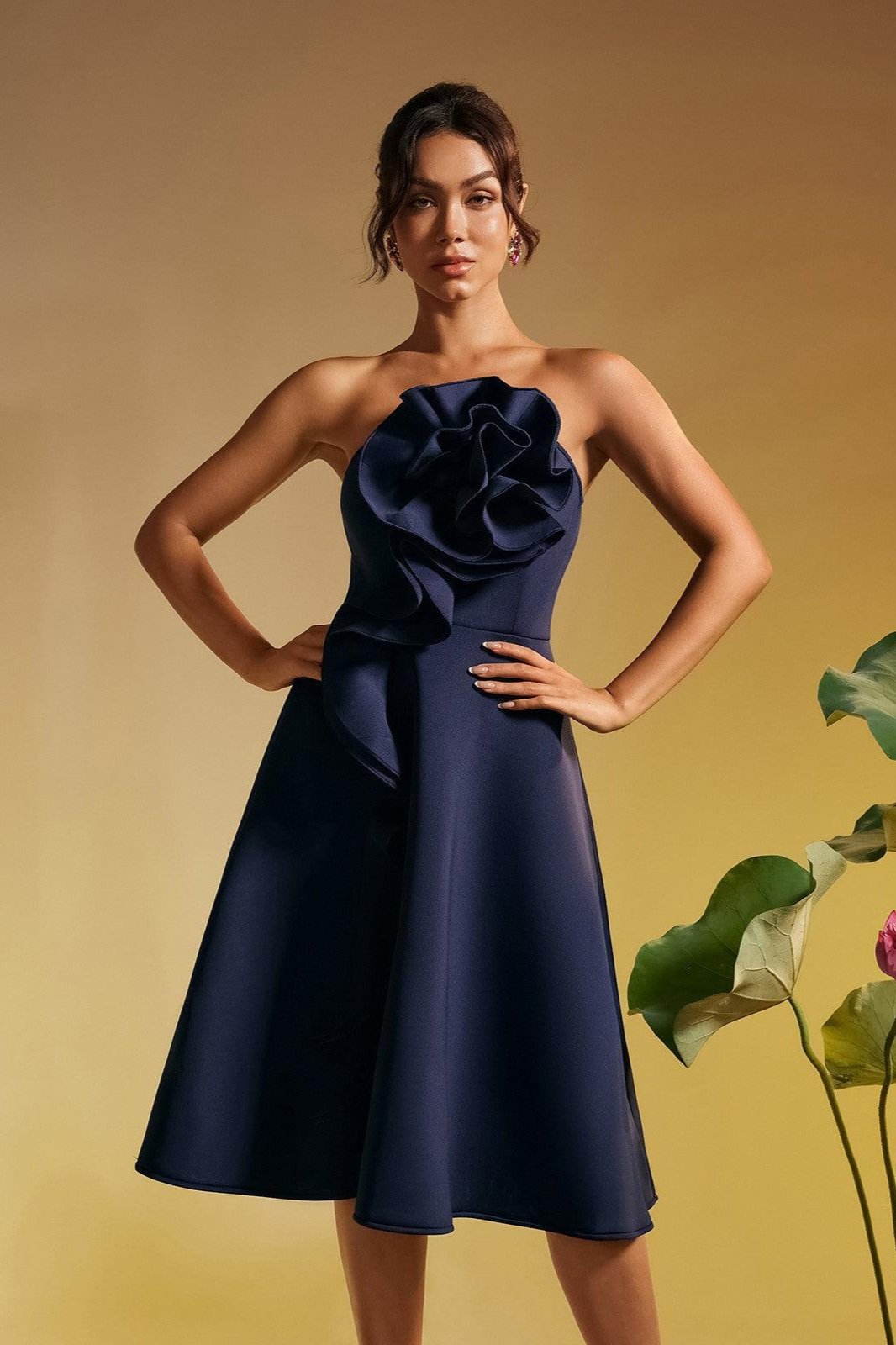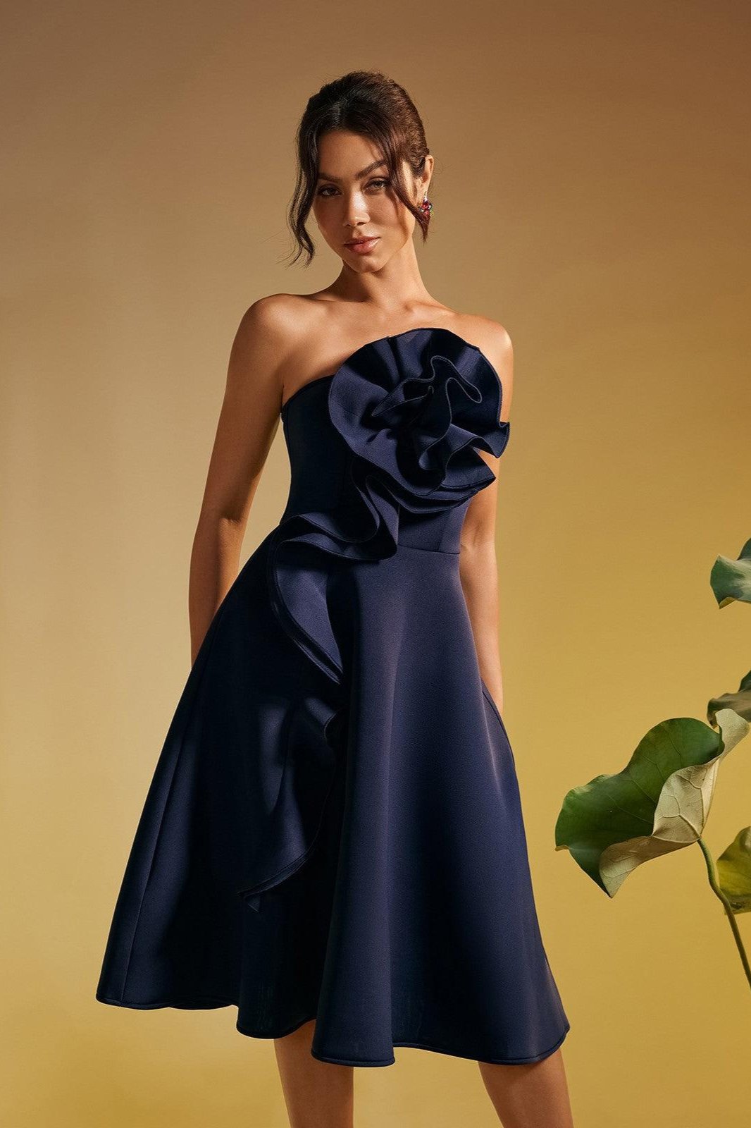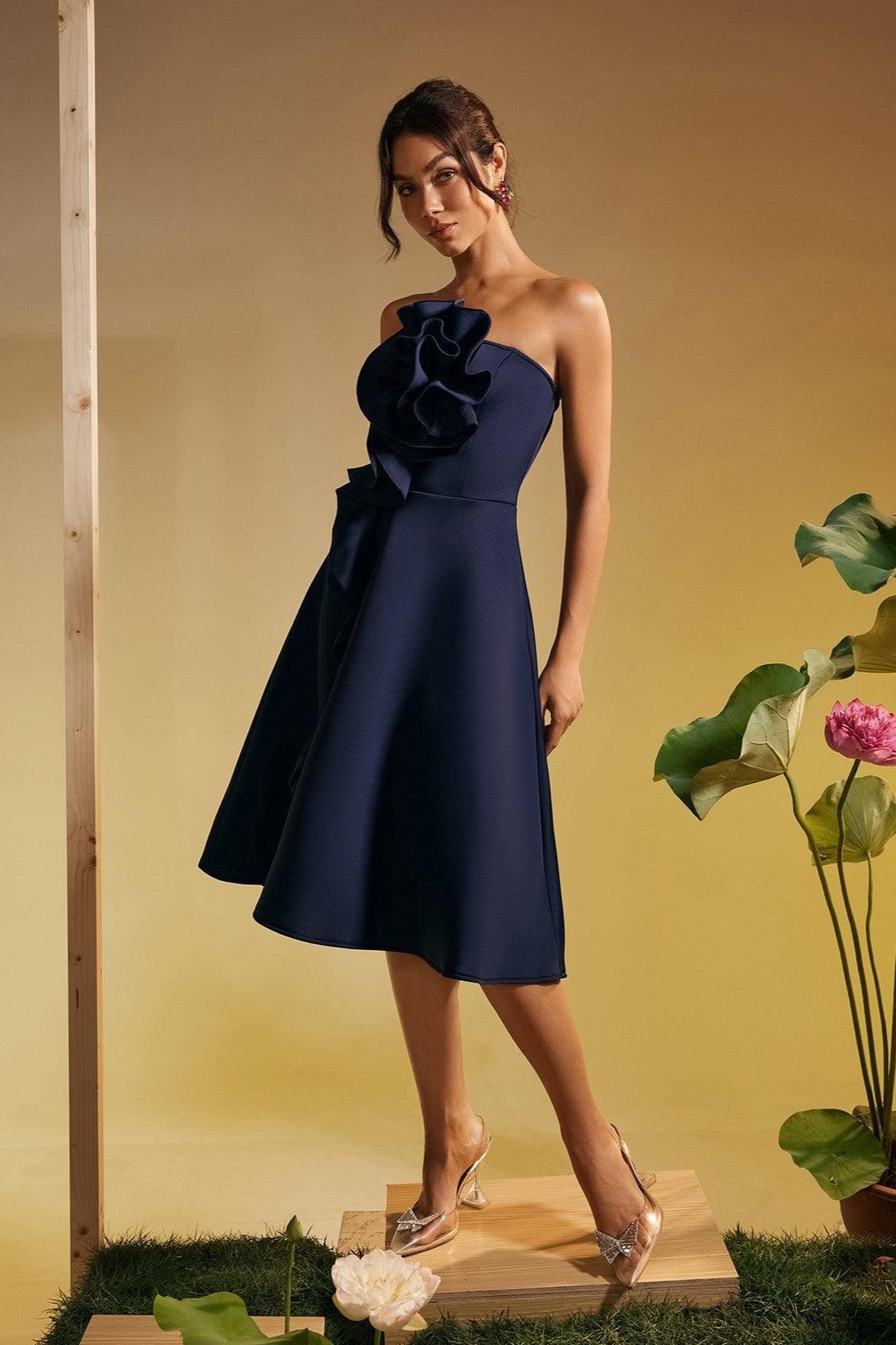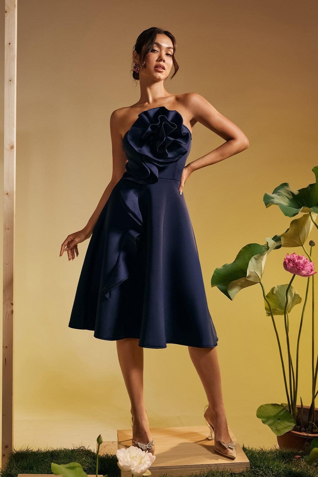 Polly Straplez Çiçek Kıvrımlı Midi Elbise