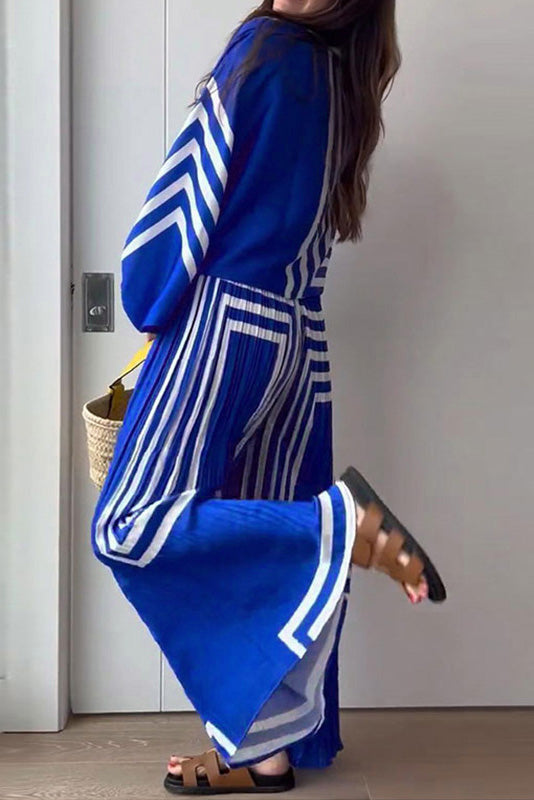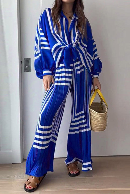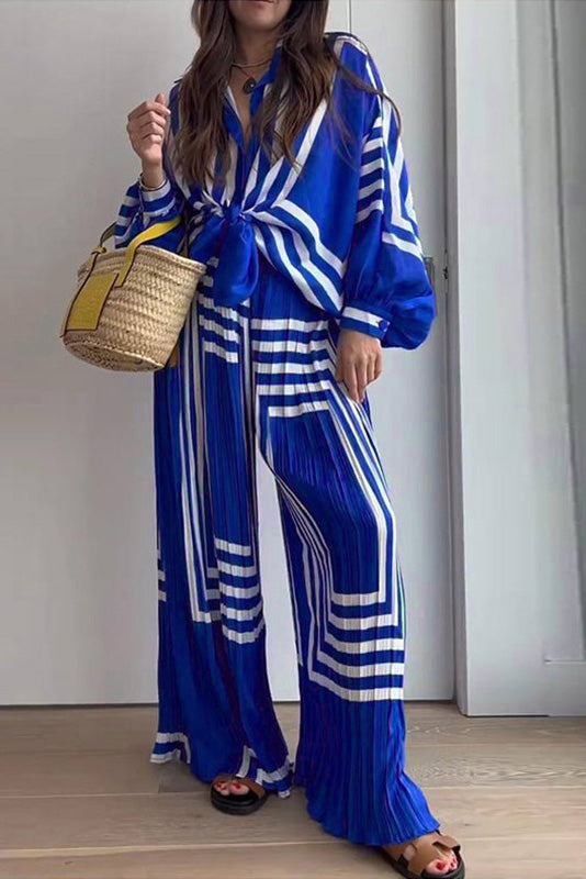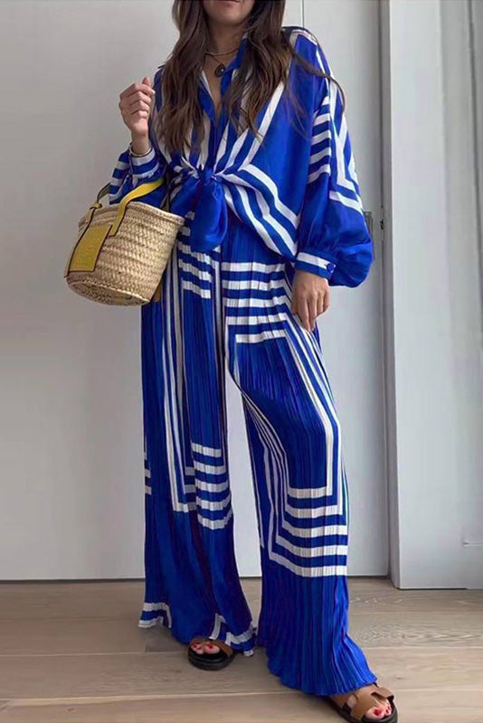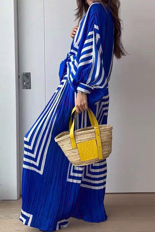 Baskılı Çizgili Pileli Takım