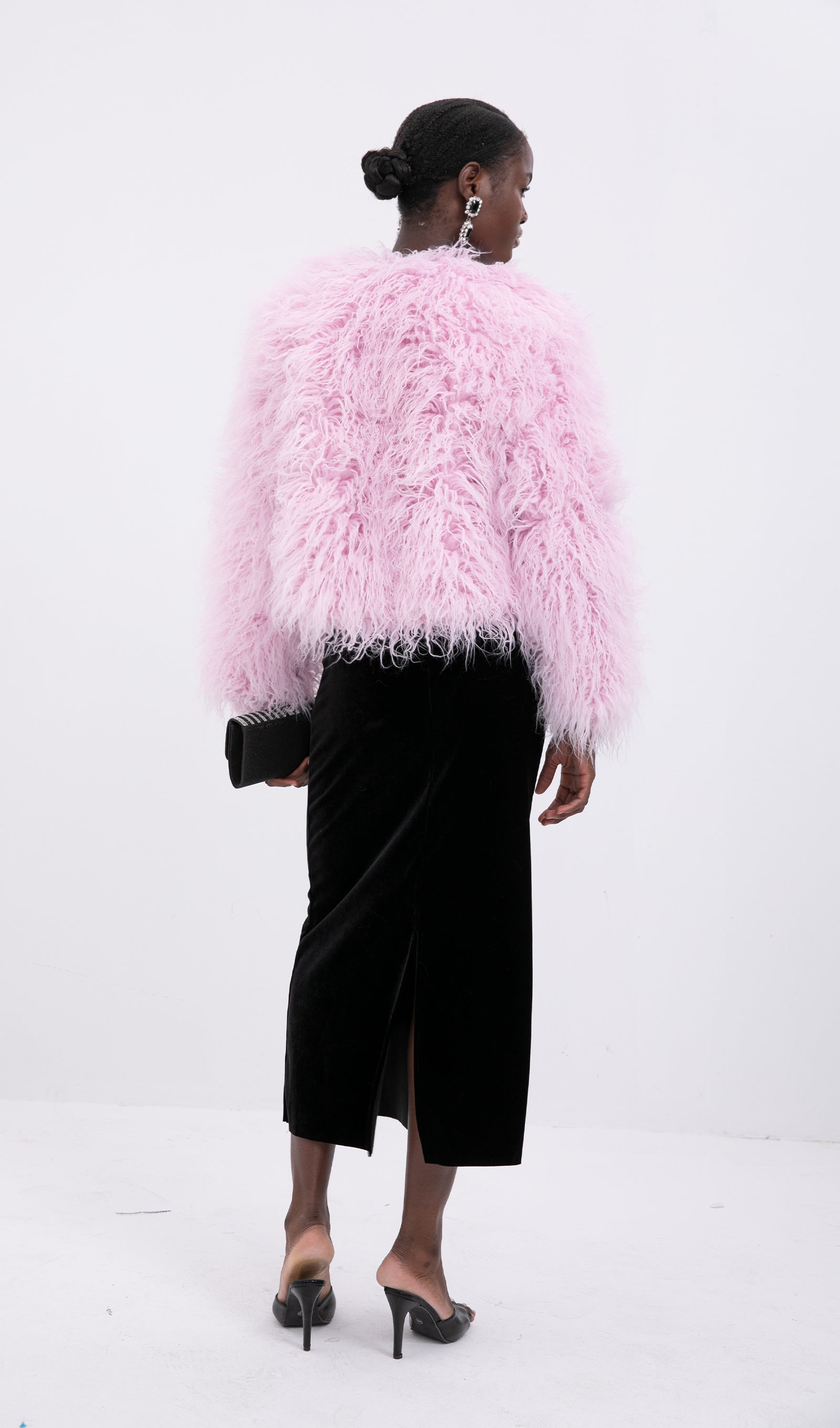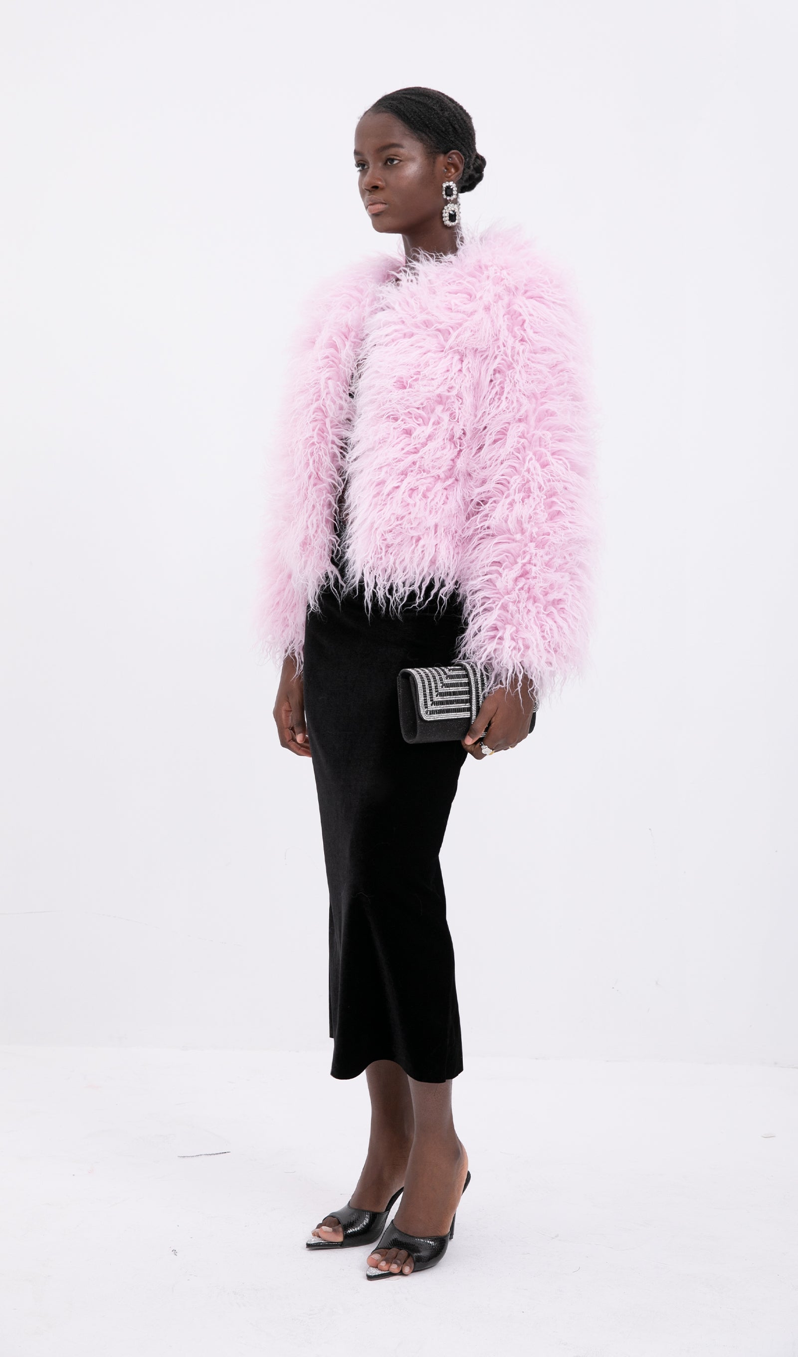 Kısa Koyun Postu Ceket Palto-Kiraz Çiçeği