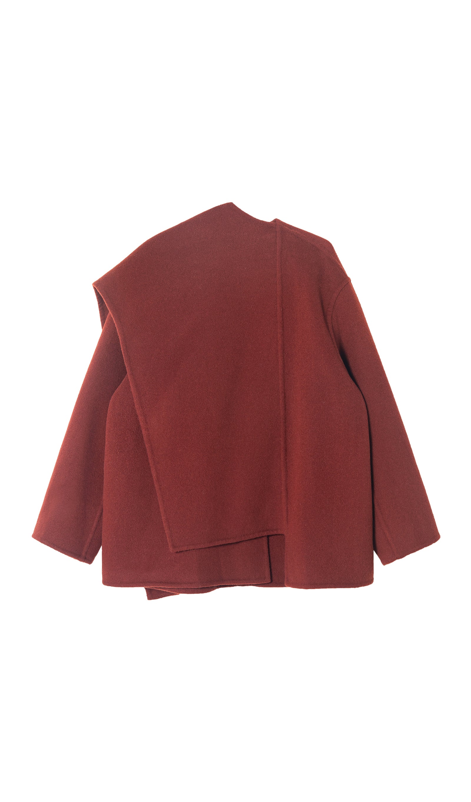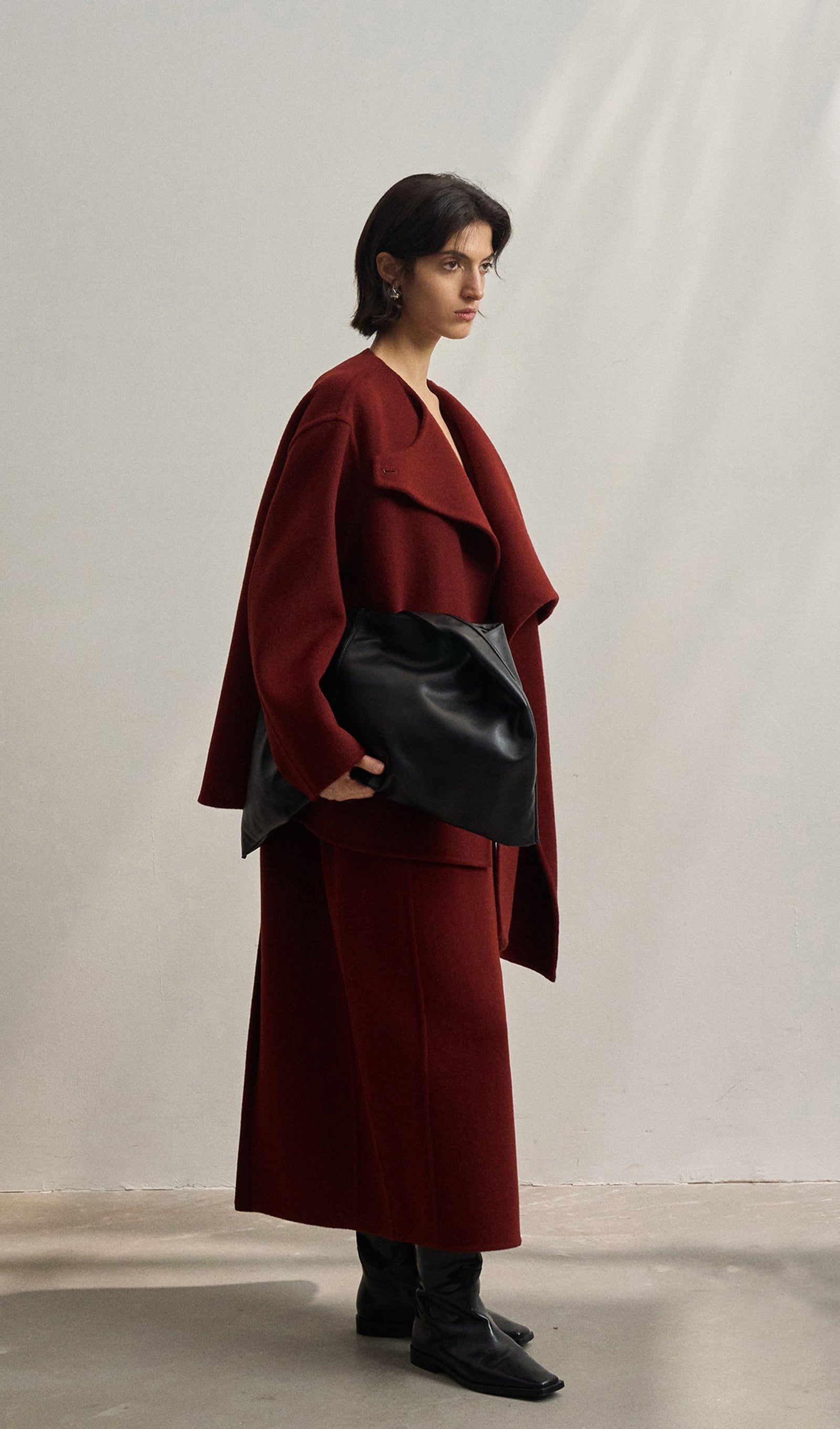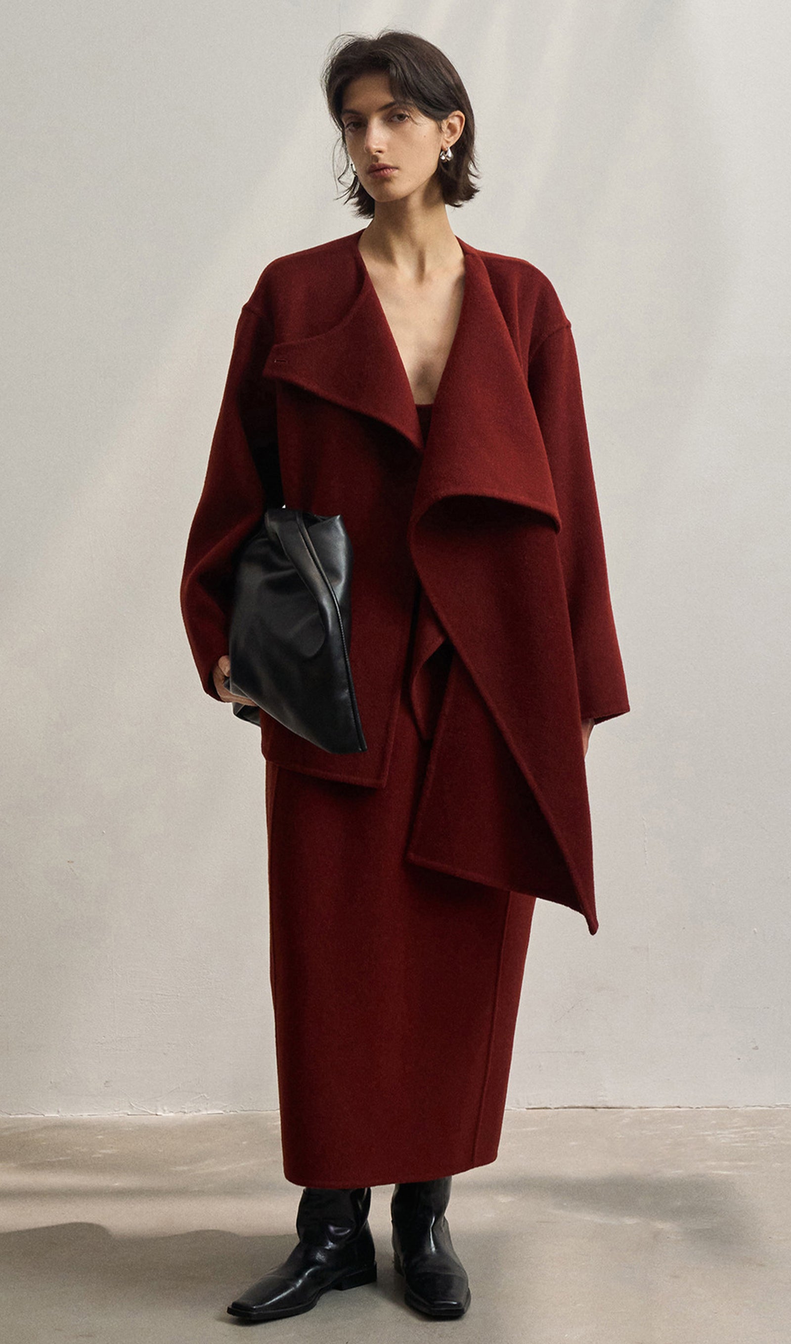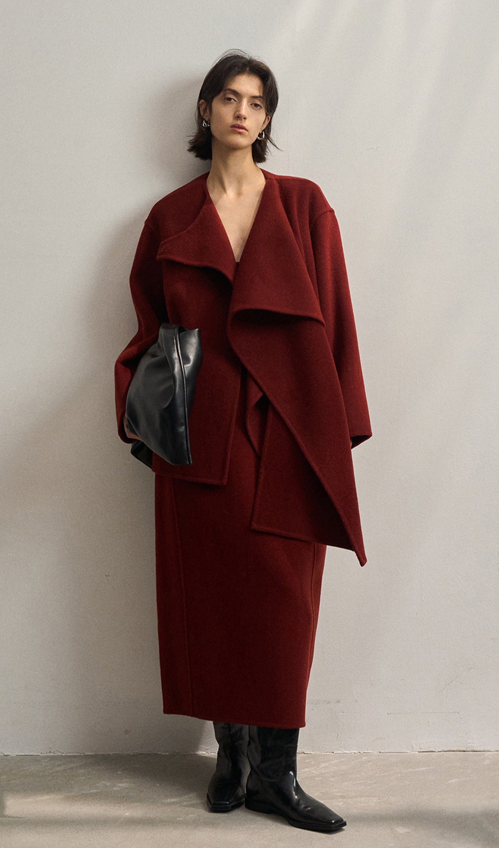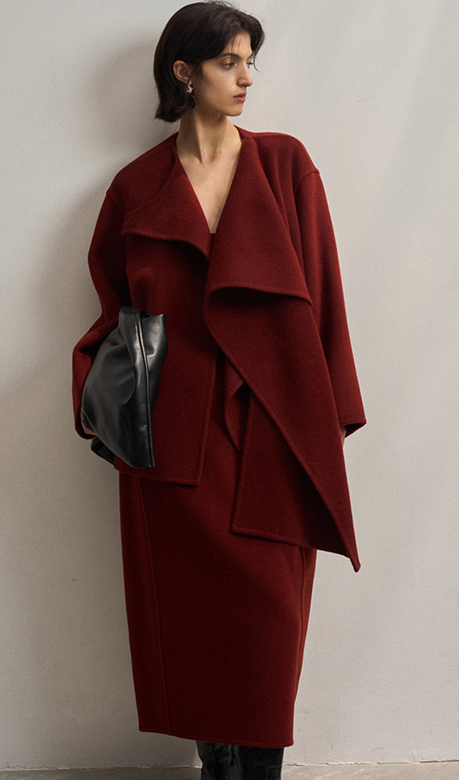 Düz Pelerin Tarzı Palto-Şarap Kırmızısı